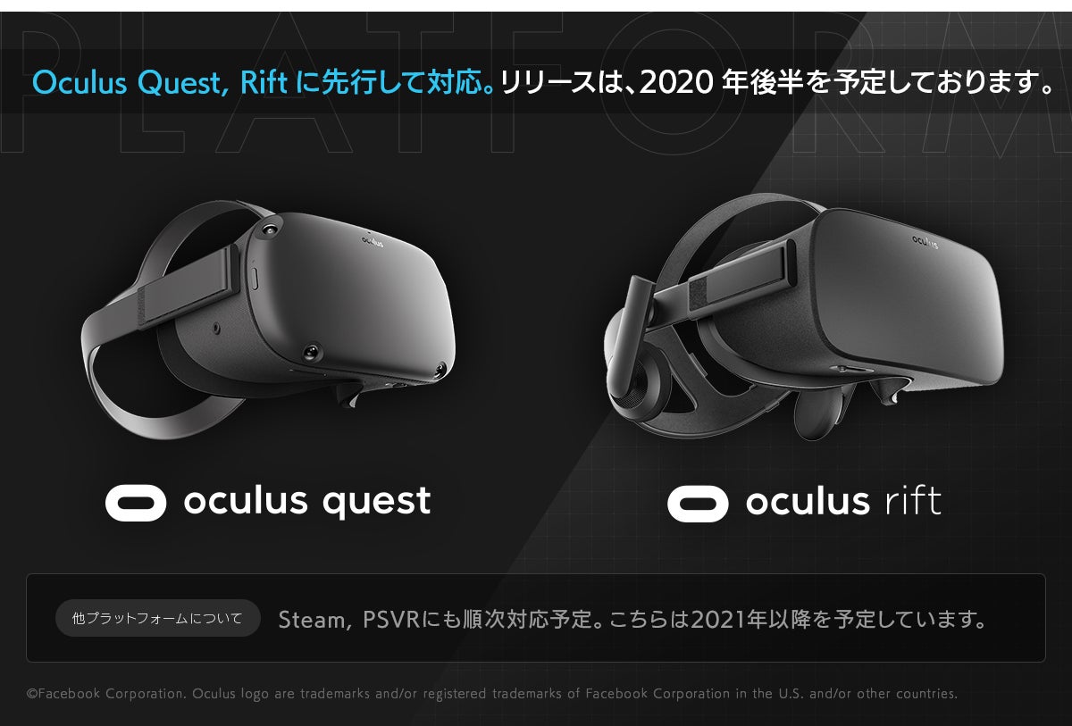 Oculus Quest, Riftに先行して対応。リリースは、2020年後半を予定しております。