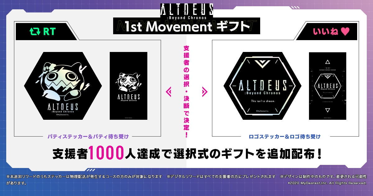 達成した際には、物理グッズのつくコースを支援いただいている方々全員に【オリジナルホロステッカー】を。そして物理あるなし問わず、全員の方に【特製デジタル待ち受け】を追加します!