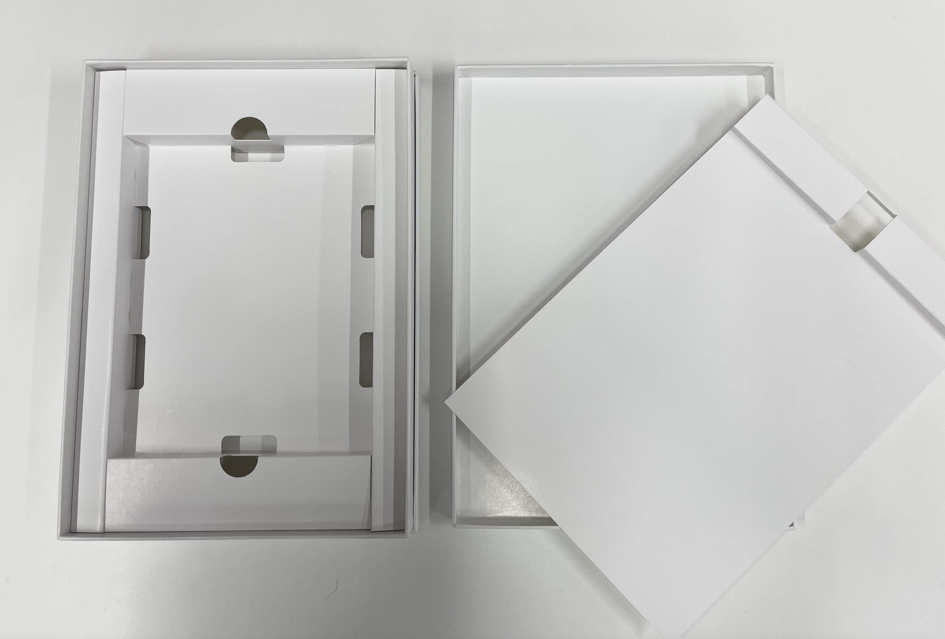 無垢な洗練されたシンプルなホワイトの箱に重ねるのは、 PET素材のレイヤードケース。
