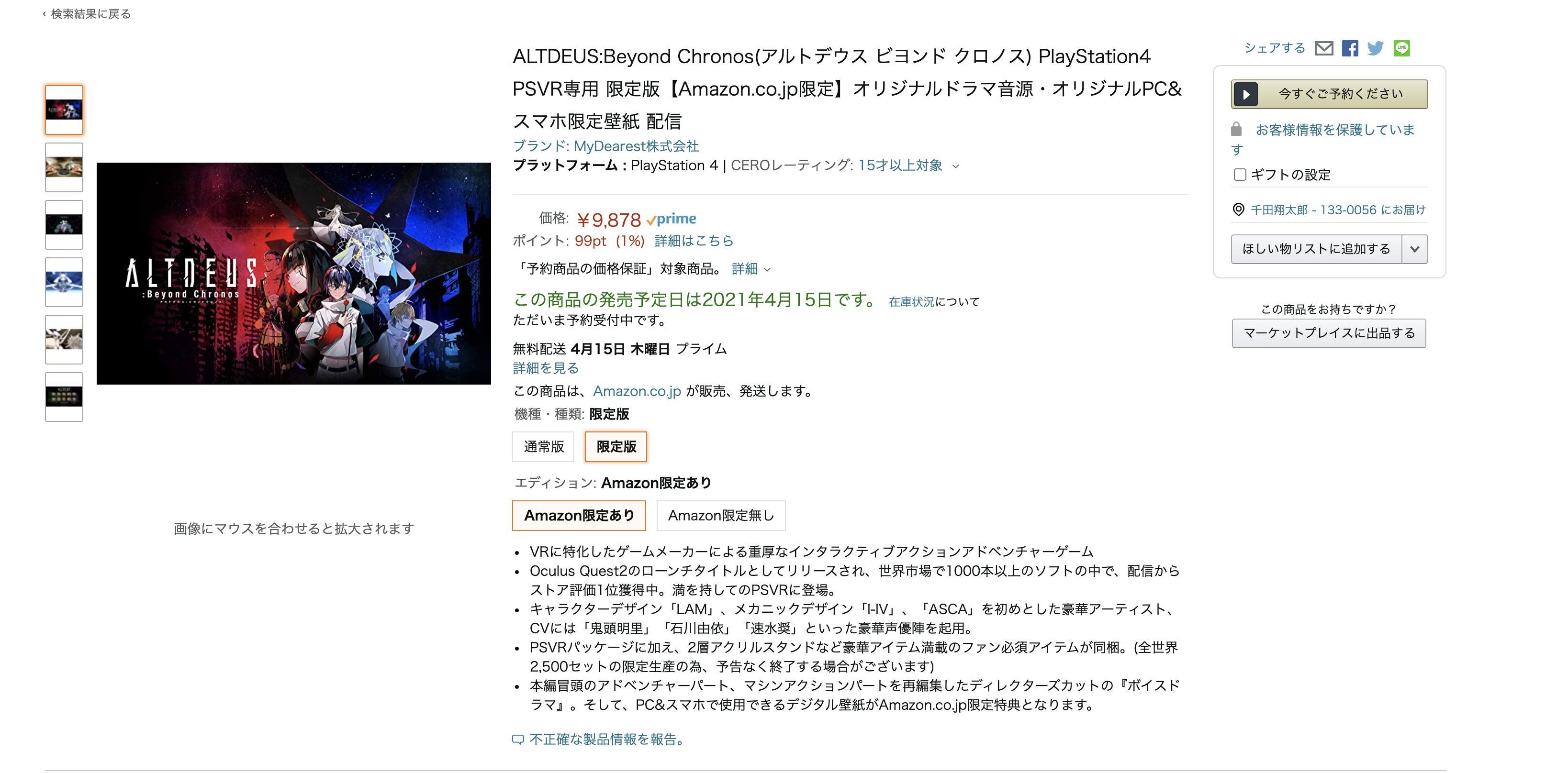 いよいよ、PSVR版の先行予約終了まであと12日…