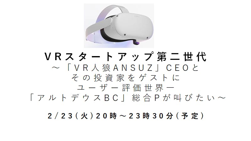 VRに興味がある方も、VR人狼アンスズが好きな方、起業を考えている方、そしてもちろんアルトデウスBCがお好きな方も、是非お越しください!!!!!!!!