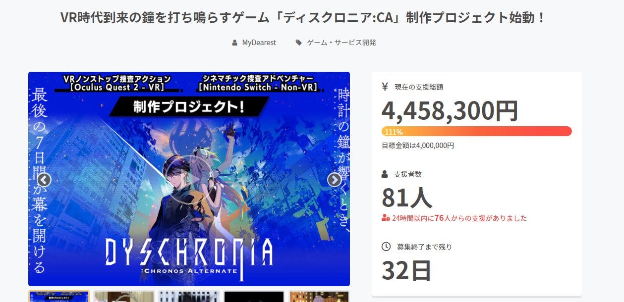 すでにご支援された方も多いと思いますが、なんと僕らMyDearestの最新作ディスクロニアのクラウドファンディングが4分で達成しました!!!!!!!