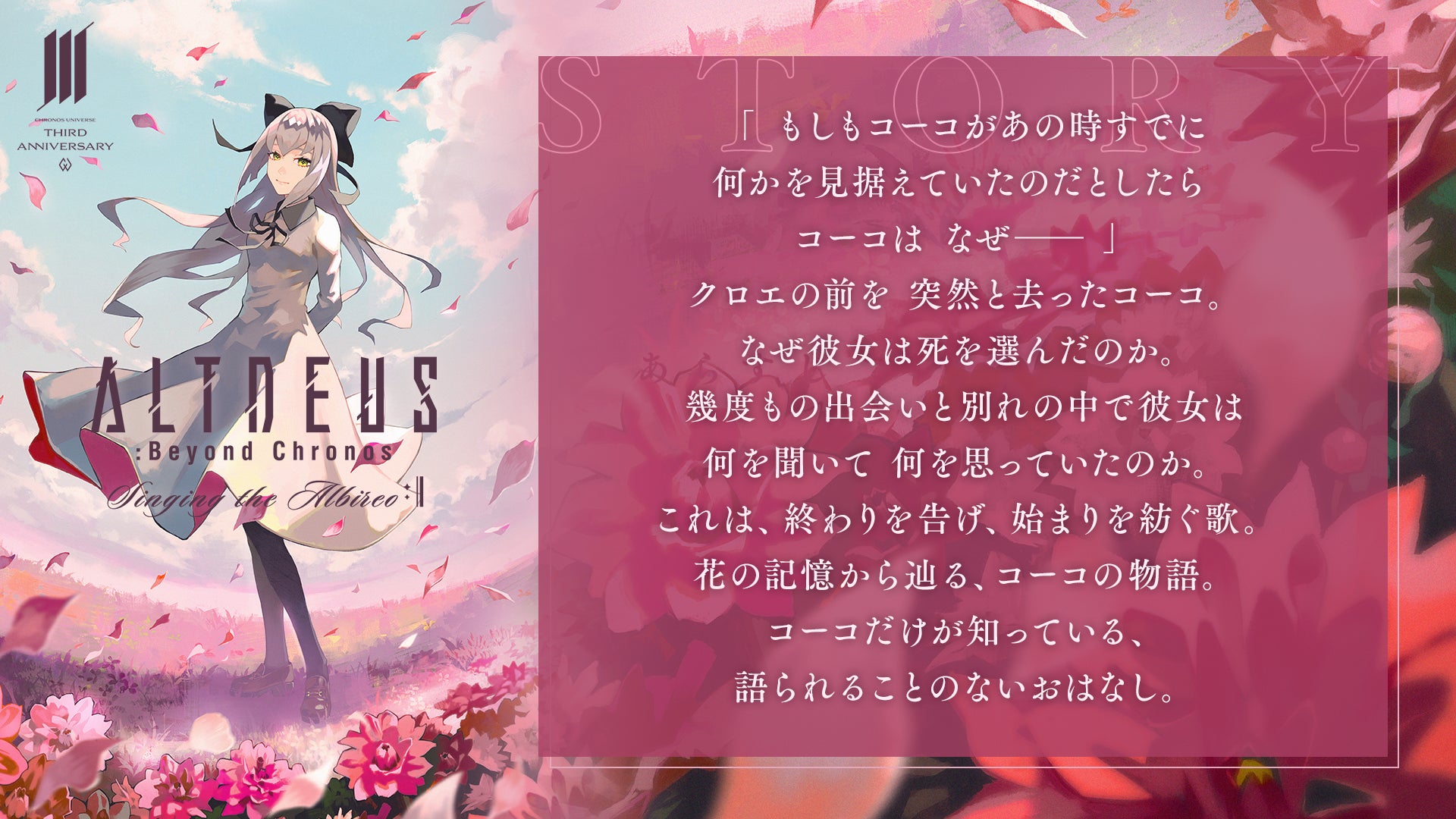 クロノスユニバース3周年の節目に「アルトデウス: BC」や「コーコ」の新たな物語をみなさまにお届けできること、本当に嬉しく思います!