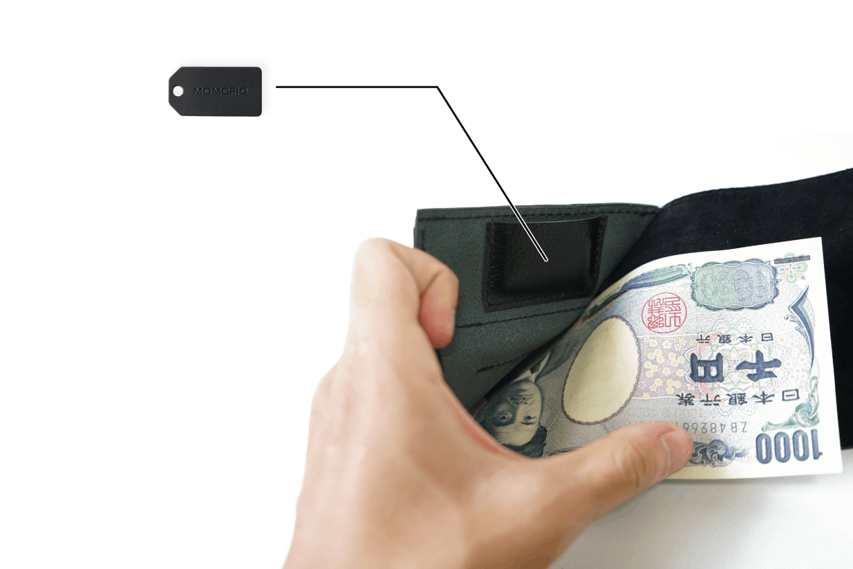 お札ポケットの内側に落し物タグ「MAMORIO」専用のケースを取り入れました。