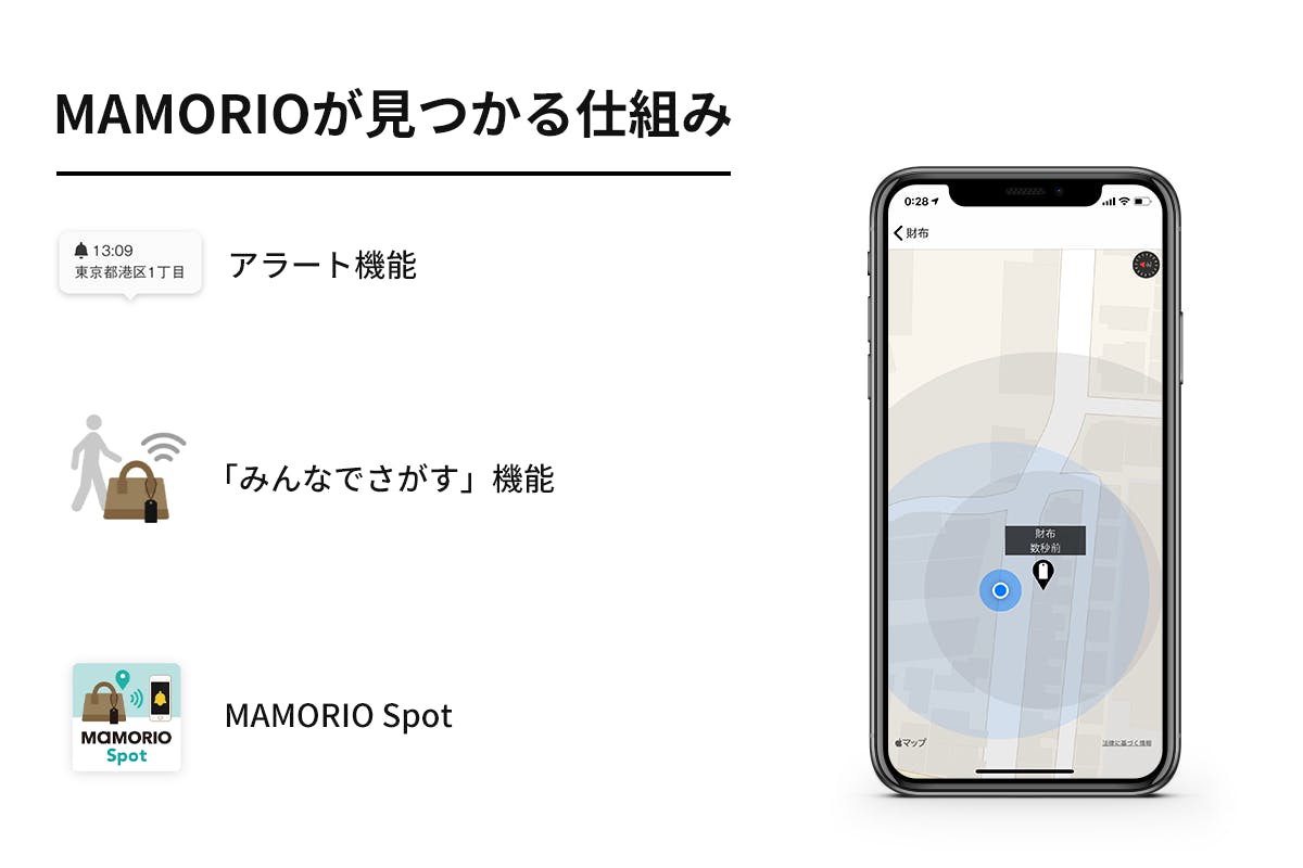 MAMORIOは世界最小クラスの紛失防止タグで、スマホ上から財布の位置を管理できます。