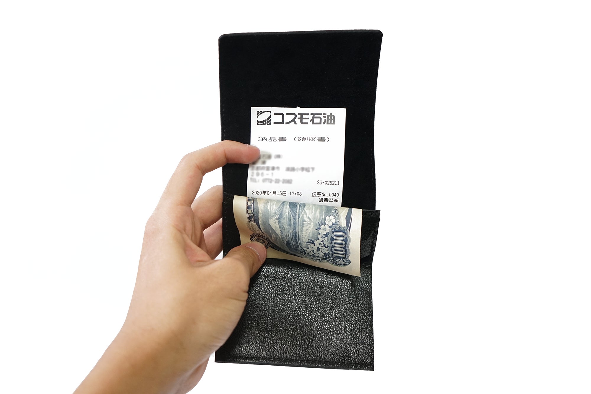 MAMORIOは、普段から使用するものではないので、目立たないお札ポケットの内側に収納します。