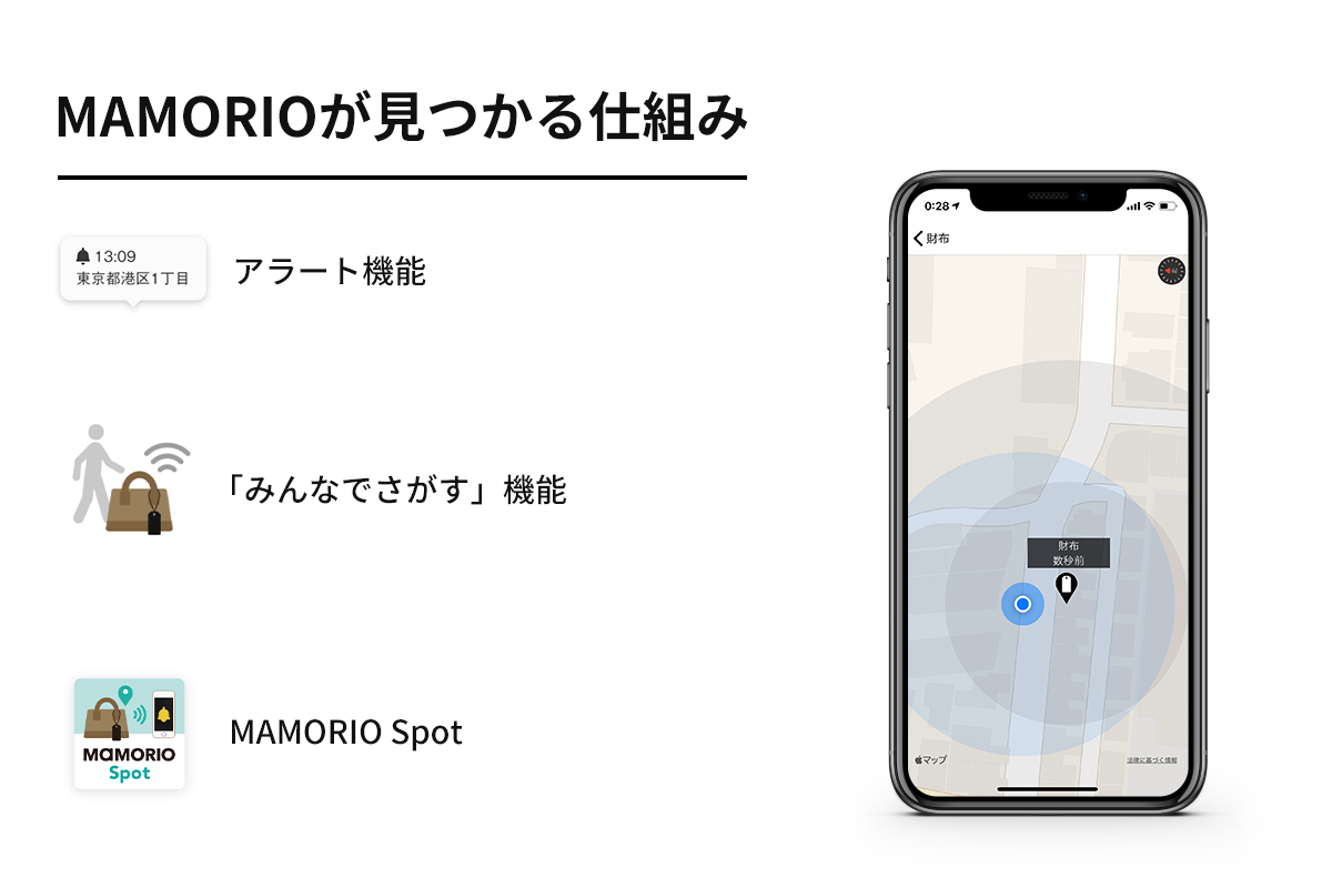 MAMORIOは世界最小クラスの紛失防止タグで、スマホ上から財布の位置を管理できます。