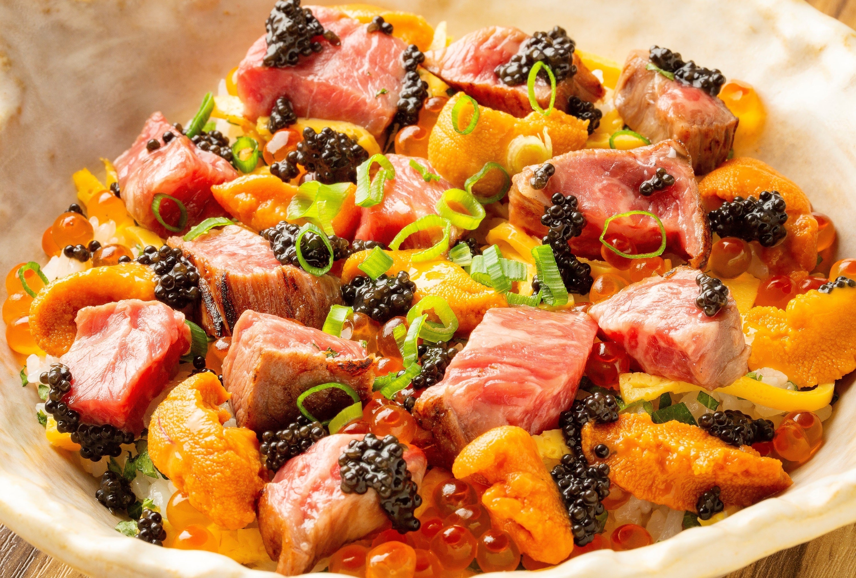 サロマ和牛とウニを使った「ちらし寿司」です
