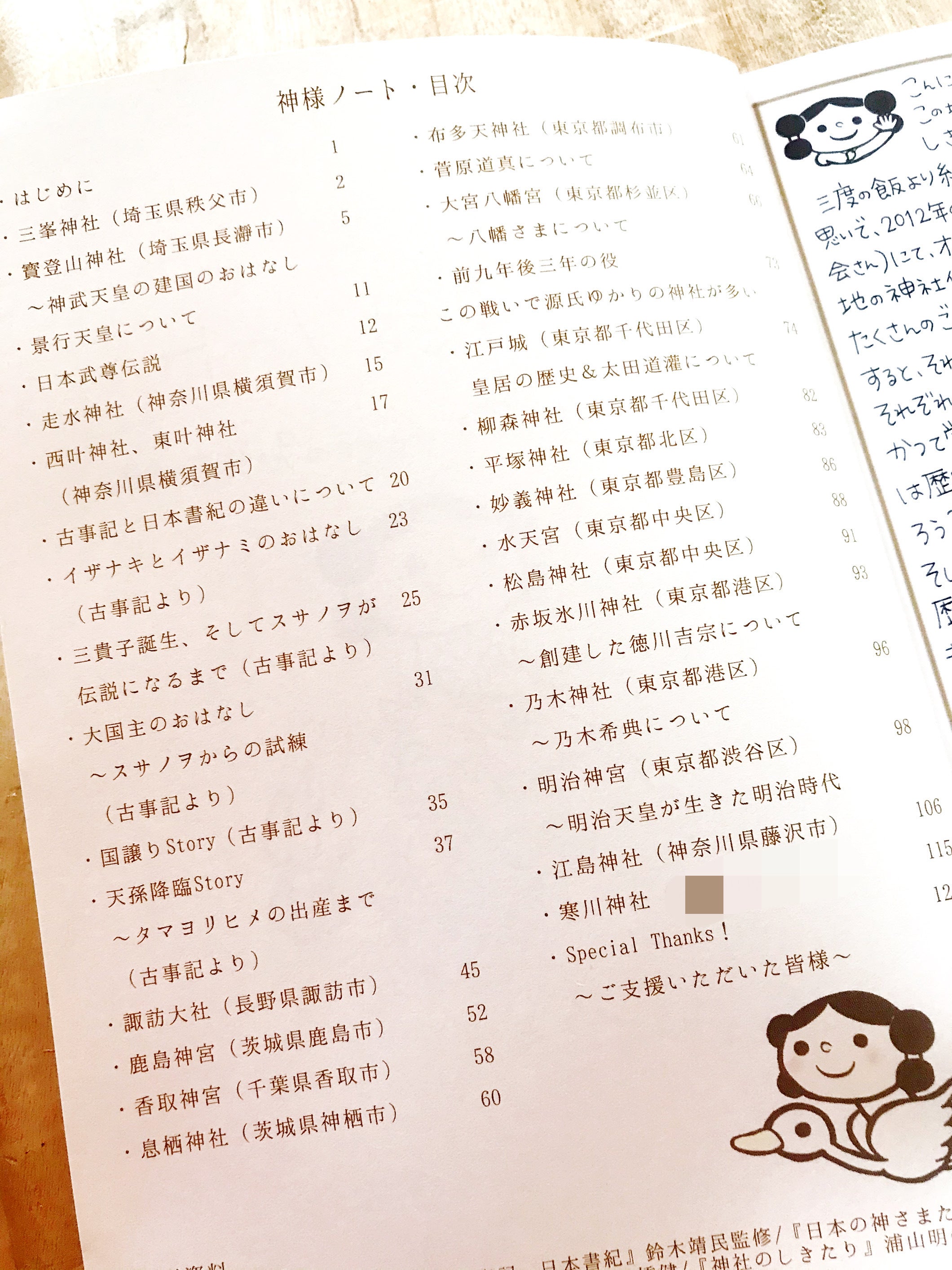 「神さまノート」は東京を中心とした関東近郊の神社、そして神社といえば「古事記」のことなどを盛り込んで製作しました。