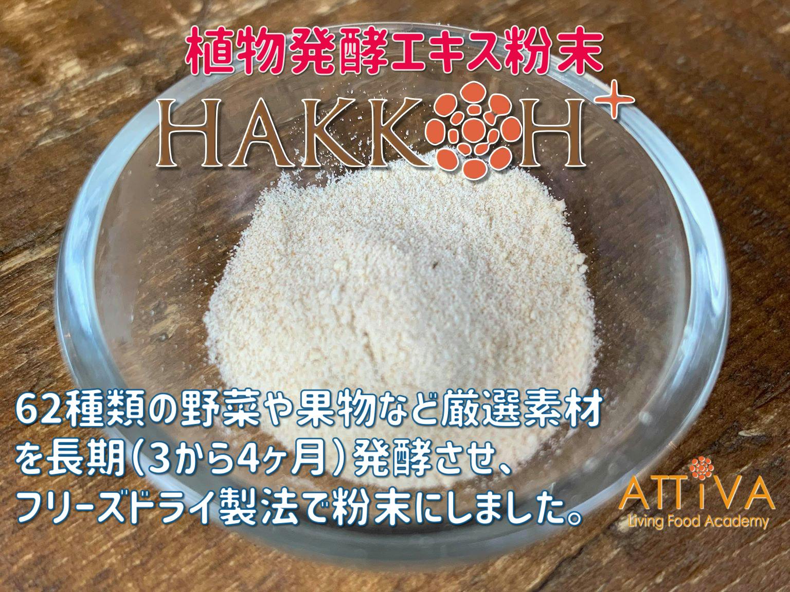 「HAKKOH+」は、農薬、化学肥料を一切使わずに育てた植物原料(有機JASの農産物を含む)を使用、有機JAS認定工場で製造されています。使用する微生物は、強酸性でも生存できる「ITOプロバイオ酵母」を使用しています。原料はアメリカNCIで研究されたデザイナーズフードプログラムで推薦された野菜を多く使用しています。