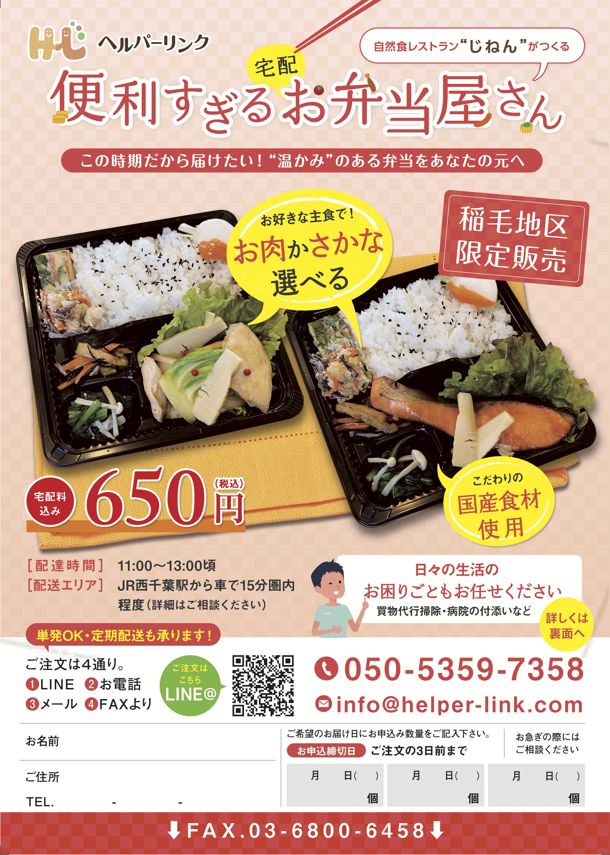 稲毛・幕張・ベイタウン付近では早速注文を受付ますので、ぜひご利用ください!