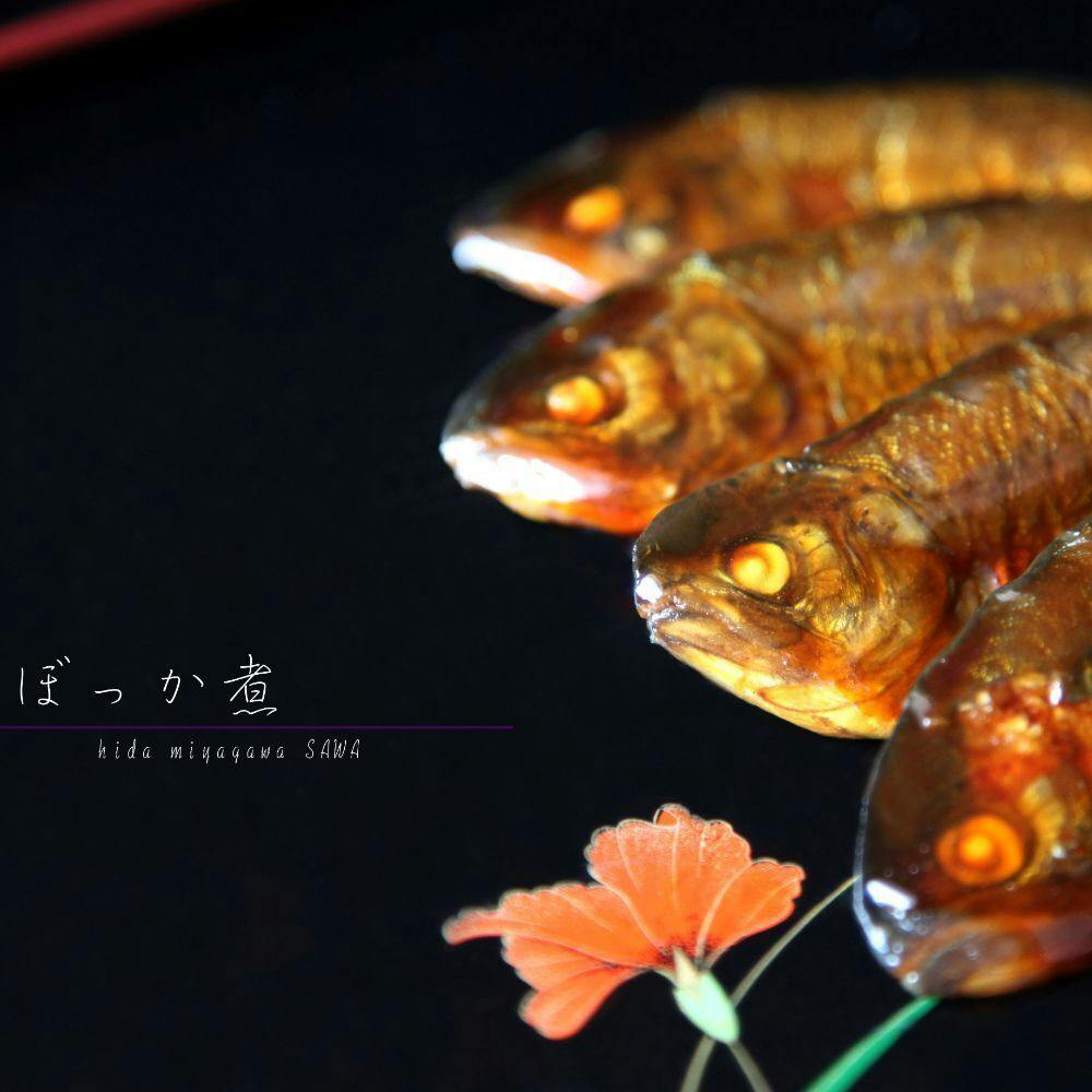 いわゆる、甘露煮なんですが独自の製法と薄味に仕上げてあり、ご飯のお供やお酒のおつまみとしても最適です。他にも飛騨牛のしぐれ煮、鮎の昆布まきも美味しいですよ。