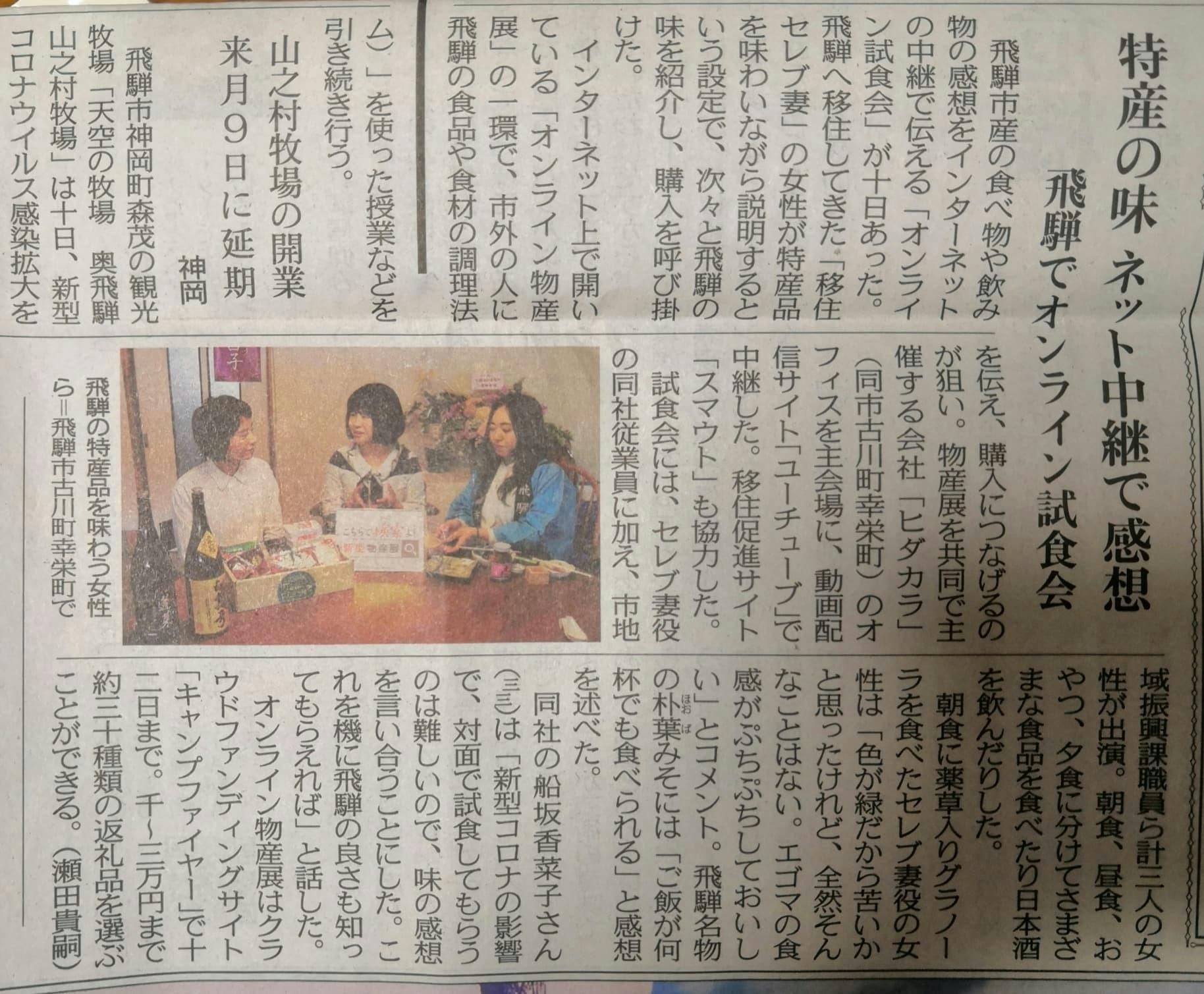 先日のオンライン試食会の様子がなんと、昨日の中日新聞さんと今朝の岐阜新聞に写真付きで掲載されました!!!!