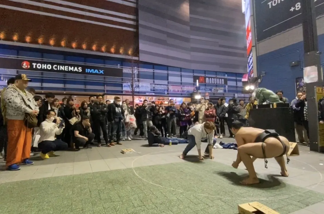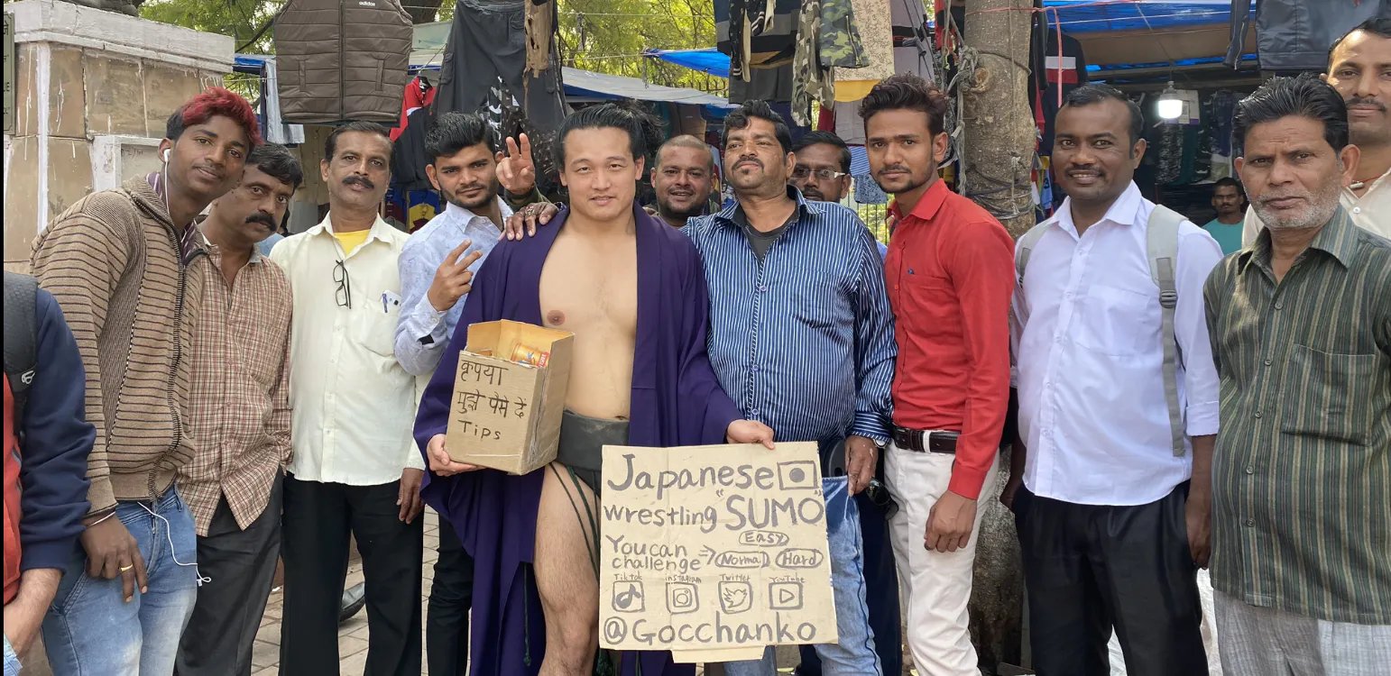 最近では海外にも出て色んな国の人と路上相撲を取っています。