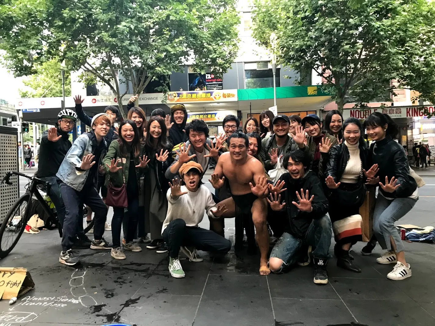 自分で歌を作ったり、まわし一丁のパフォーマンスは学生の頃からやっていましたが、路上ライブは大相撲引退後にやったのが初めてです。そしてある日を境に毎日やることにしました。大学から馴染みの京都で4ヶ月間本当に毎日路上ライブをし、道ゆく多くの人に色んな反応をもらいながらパフォーマンスの経験を積んで行きました。京都は海外からの観光客も多く、路上相撲にも積極的に参加してくれたりと海外でやってみたい気持ちが高まっていきます。