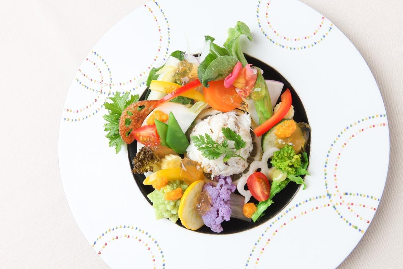 見た目にも美しい彩りは、中心にカニをほぐした身と、10種類以上の有機野菜がコラボレーションし、カニの旨味を堪能できる一品となっています。