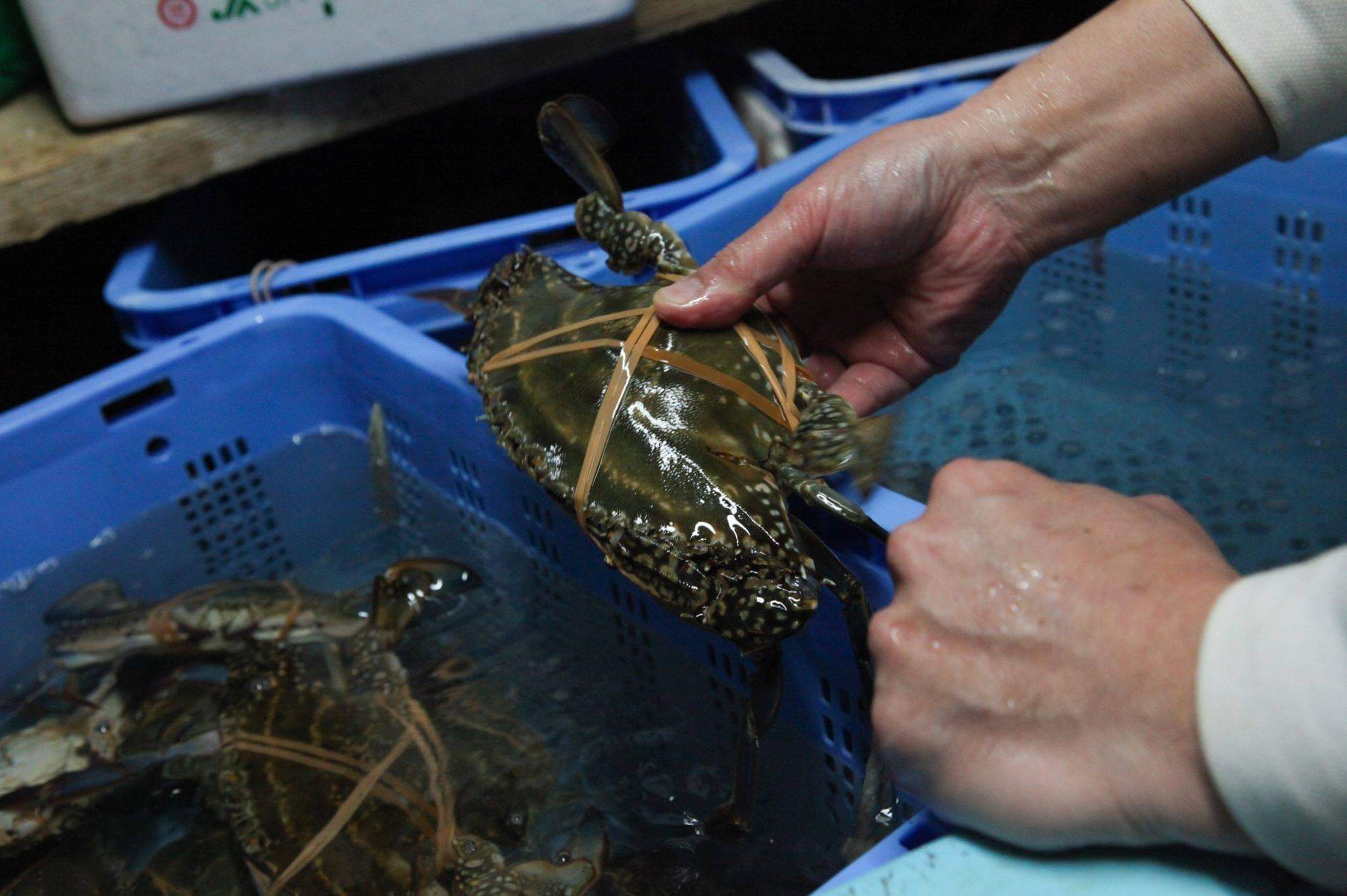 地元泉佐野漁港で水揚げされた新鮮なわたりがにと