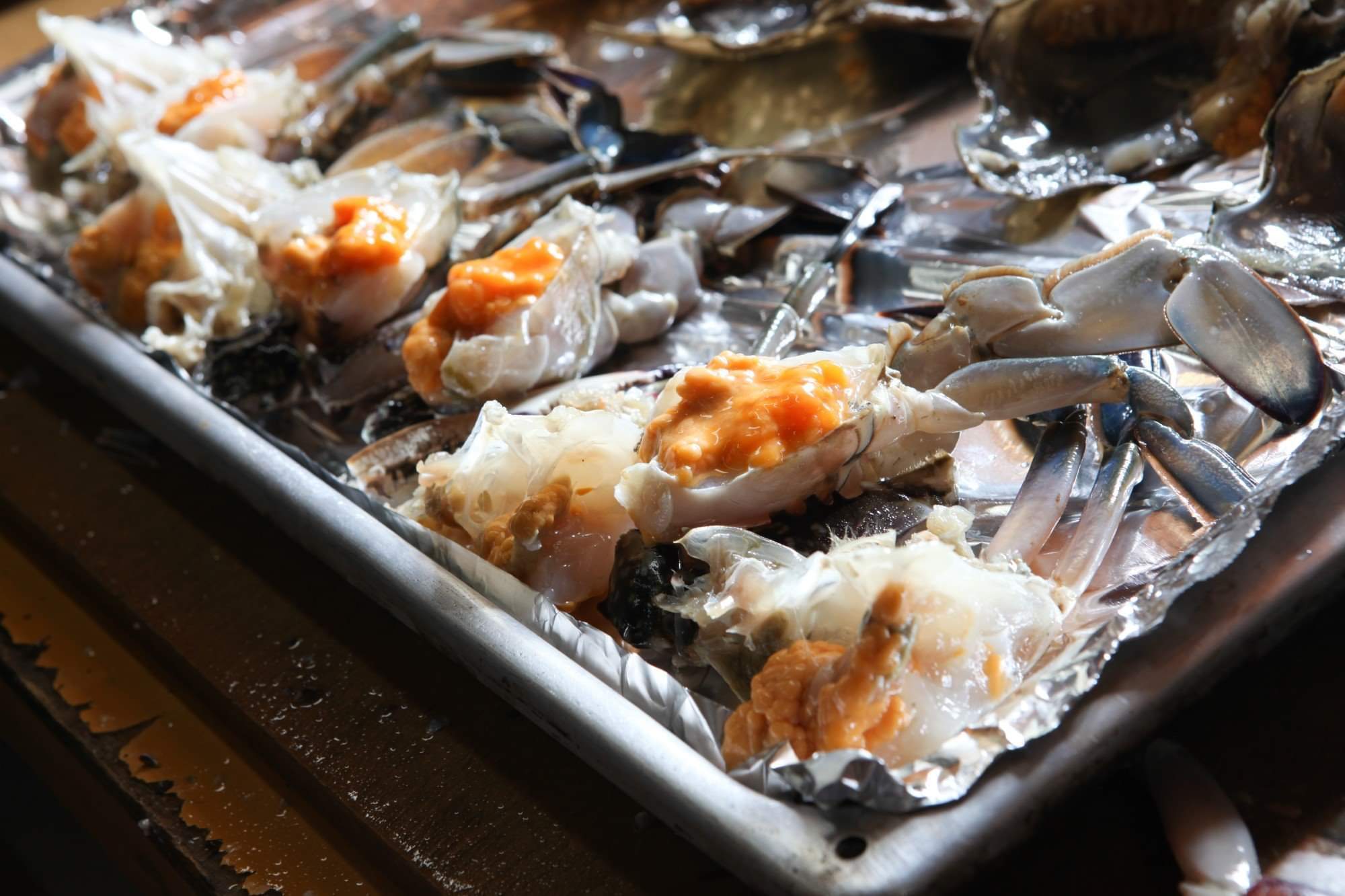 これは父が編み出した商品で、一般的なかにの塩焼きとは異なり、わたりがにの旨味を存分に楽しんでもらう点を重視しようとすると、身と甲羅で熱の入り方が異なるため、焼き加減がもっとも難しんです。身と甲羅がすぐに焦げてしまう点や、熱を入れつつも身を固くさせないという点を克服するまで1年がかりで調理法を開発しました。