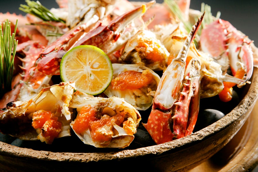 冒頭でもご紹介した通り、創業以来、松屋はわたりがに専門店として、冬から春にかけてはオレンジ色に輝く内子が美味しいメスがに、夏から秋にかけては大ぶりな甲羅と濃厚な味わいが特徴のオスがにのお料理をご案内しています。
