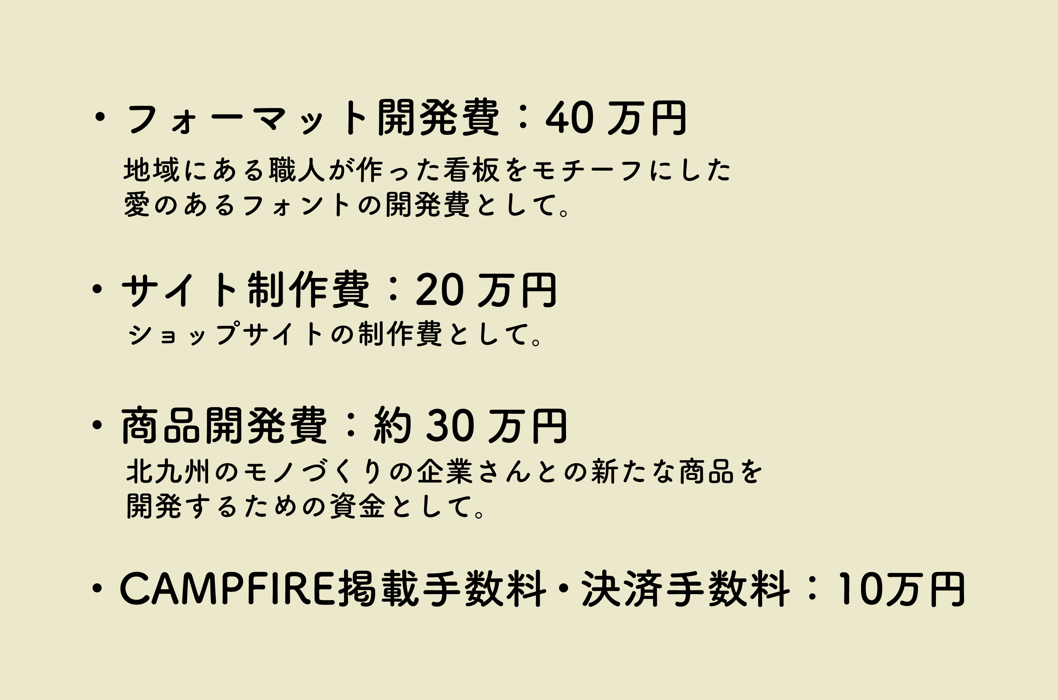 ご支援いただきました資金は以下の費用に当てさせていただきます。