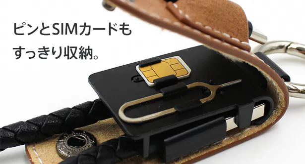 しかし、このキーホルダータイプの充電ケーブルは、SIMカードを収納可能。