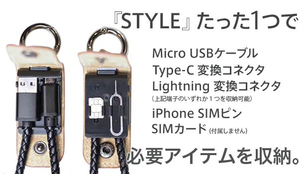 STYLEは Lightning , Micro USB , Type-C に対応。