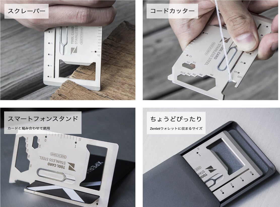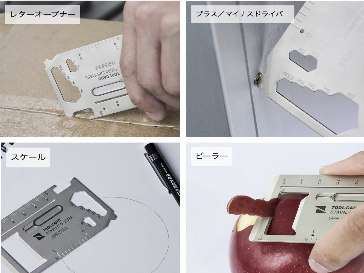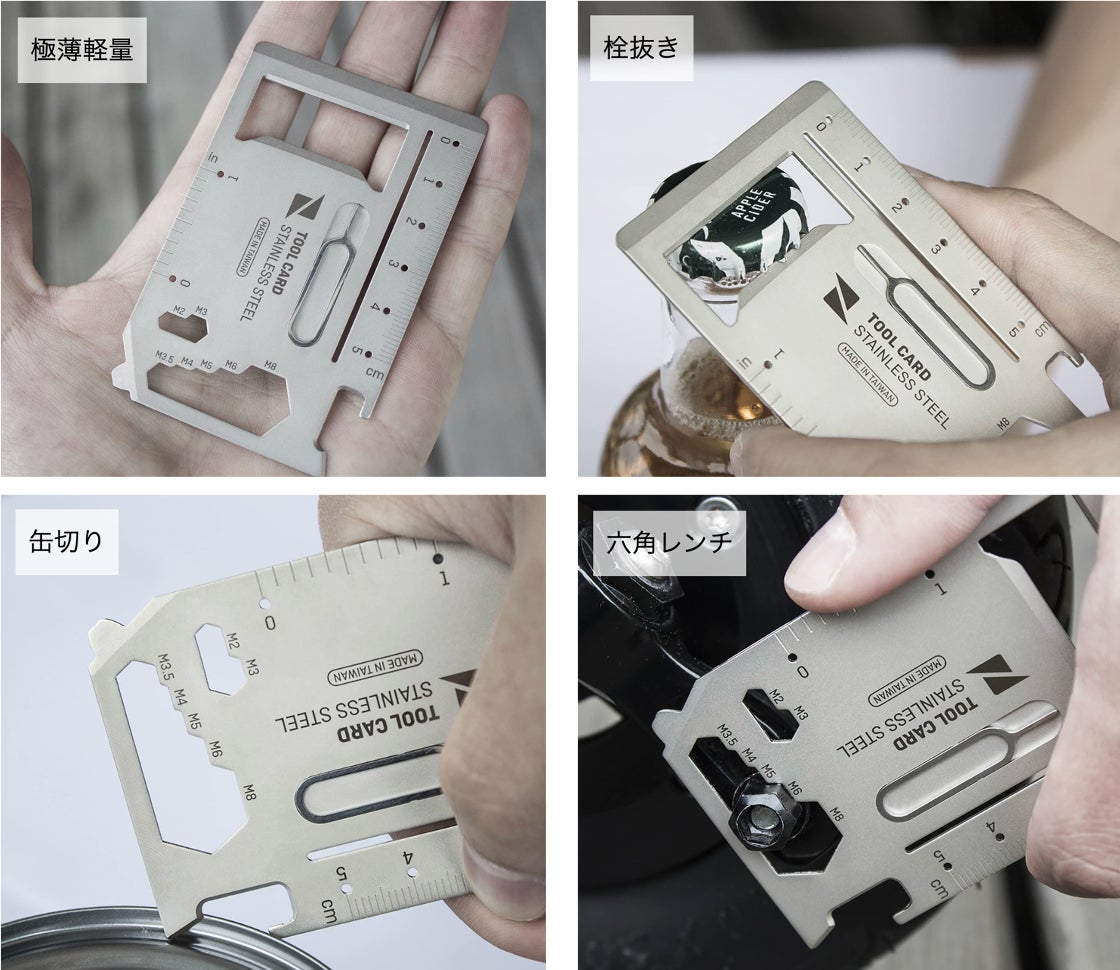 ドライバー、六角レンチ、栓抜き、定規など10種以上の機能を備えています。