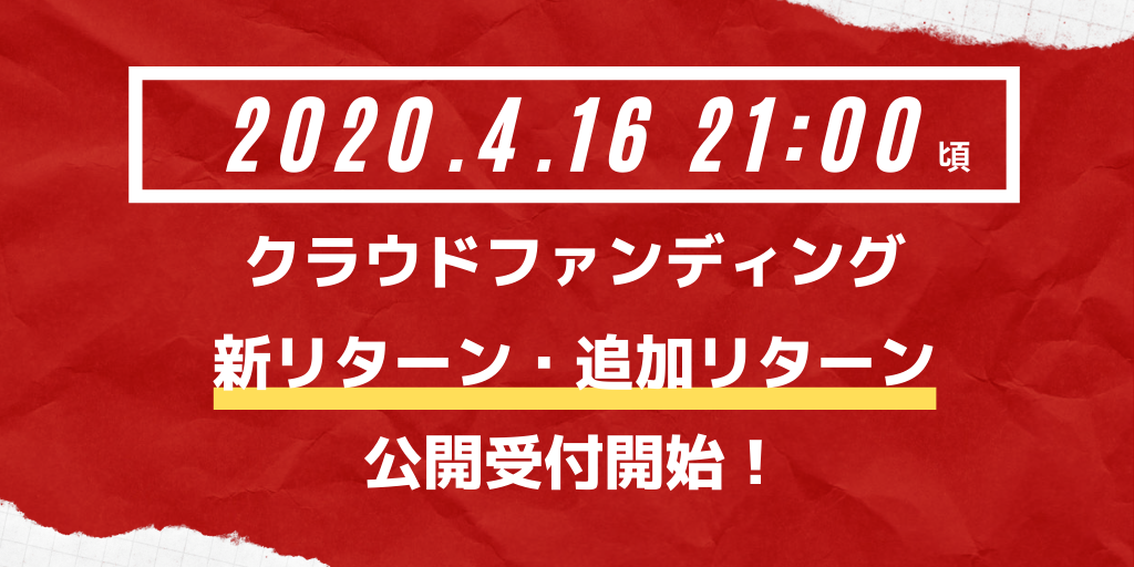 2020年4月16日(木) 21:00頃より、下記リターンの追加を開始します。