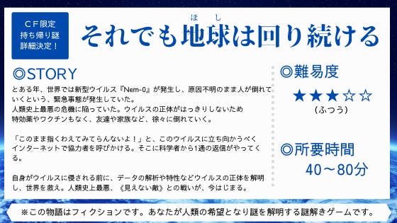 ご自宅で解ける、一般流通しないクラウドファンディング限定のお持ち帰り謎です。