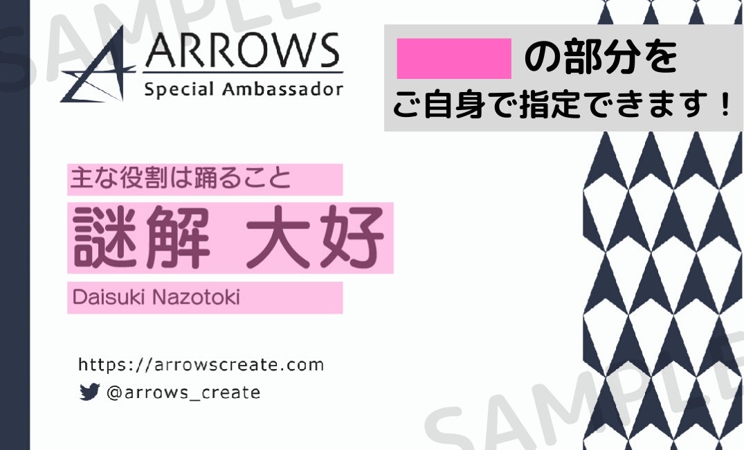 表面には、ARROWSスペシャルアンバサダーのロゴが入った名刺となっており、