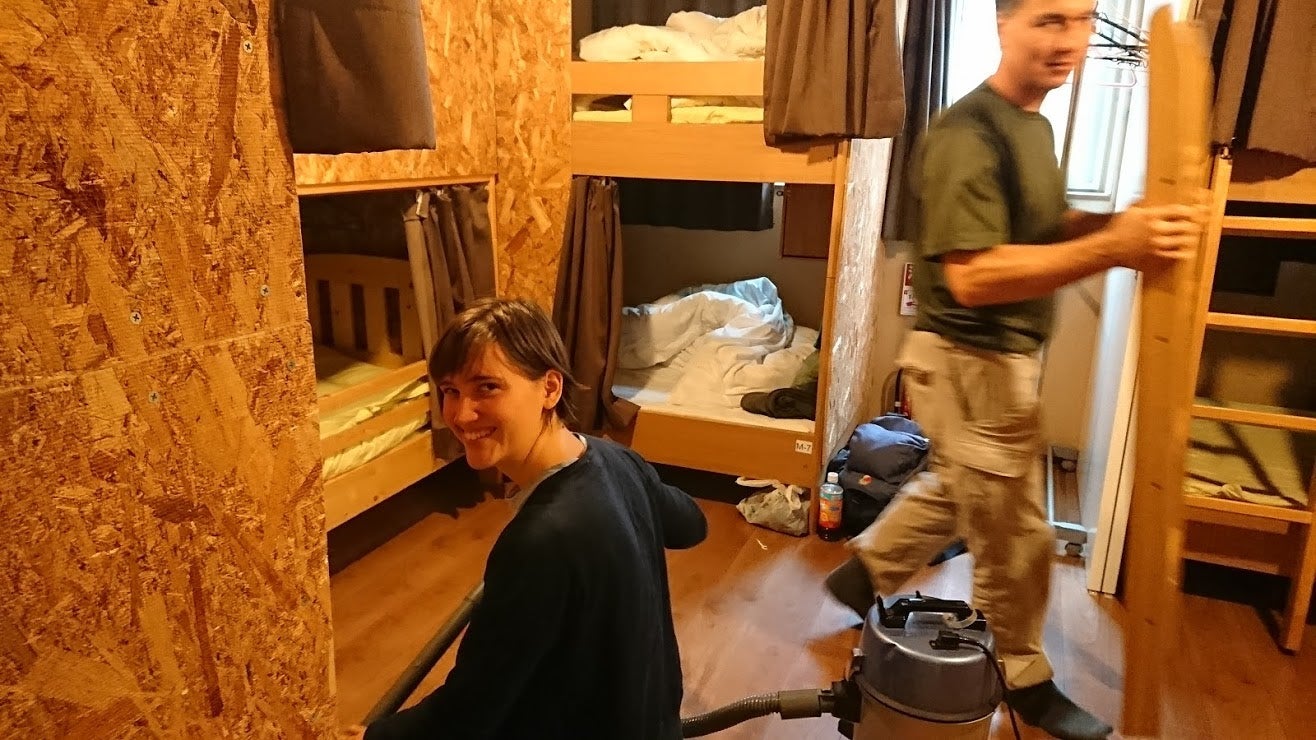 男女混合の10人部屋(二段ベッド)、男女混合5人部屋(布団)、女性専用6人部屋(ベッド)、個室(二人まで)の4タイプがあります。