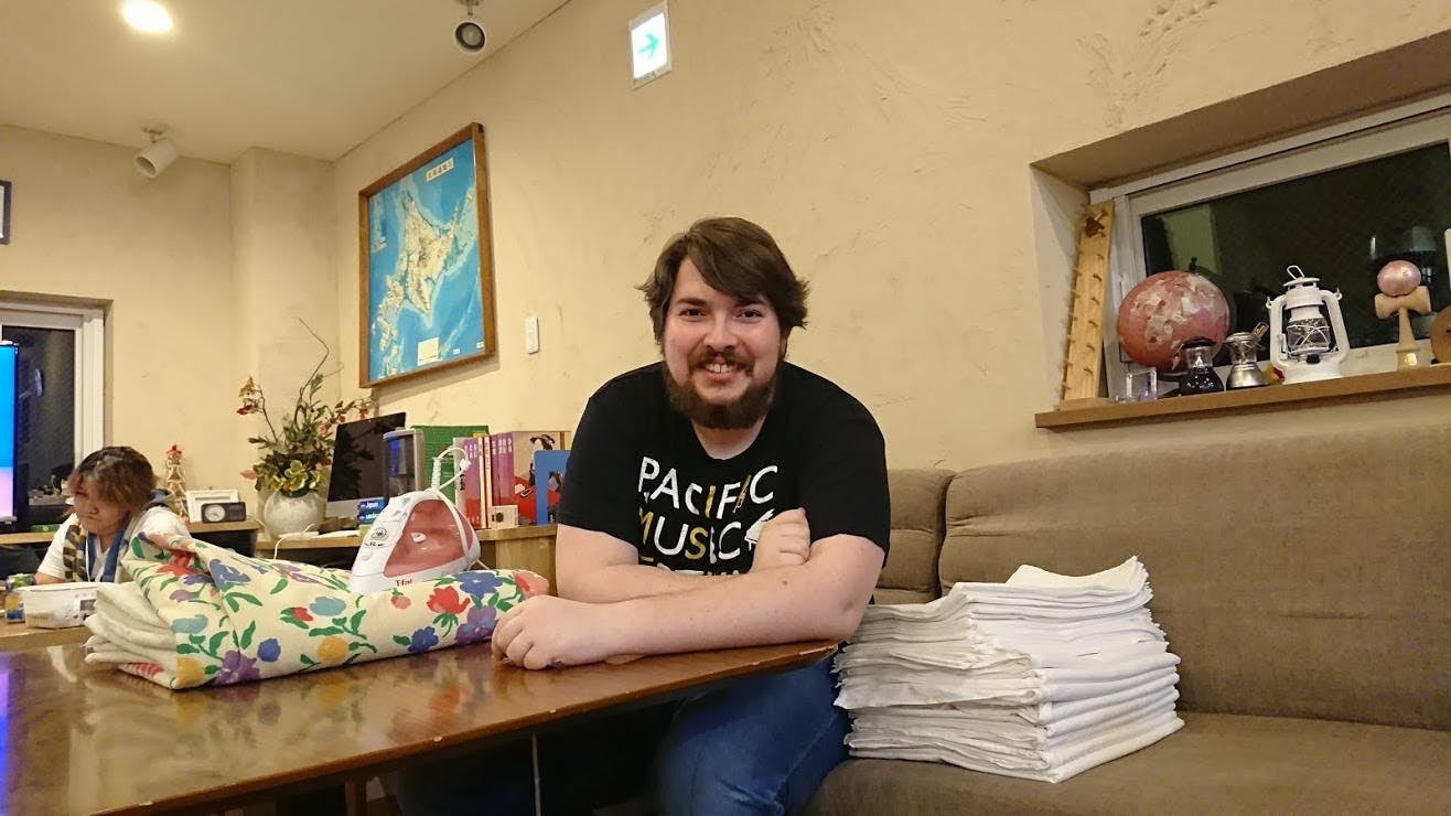 私の旦那さん(ハリー)はアイルランド人です。スキーとスノーボードが大好きで世界一のパウダースノー北海道に移住してきました。仕事はスキーリゾートでのインストラクターで、生徒は主に外国人観光客です。夏はゲストハウスが繁忙期になるので掃除やベッドメイクを手伝ってくれます。ま、冬に稼いで夏は旅行(ハリーはバツイチで。スイスにいる娘が年に一回ダディに会いに来て一緒に国内を旅行する)というライフスタイルなので、あまりアテにならない(笑)