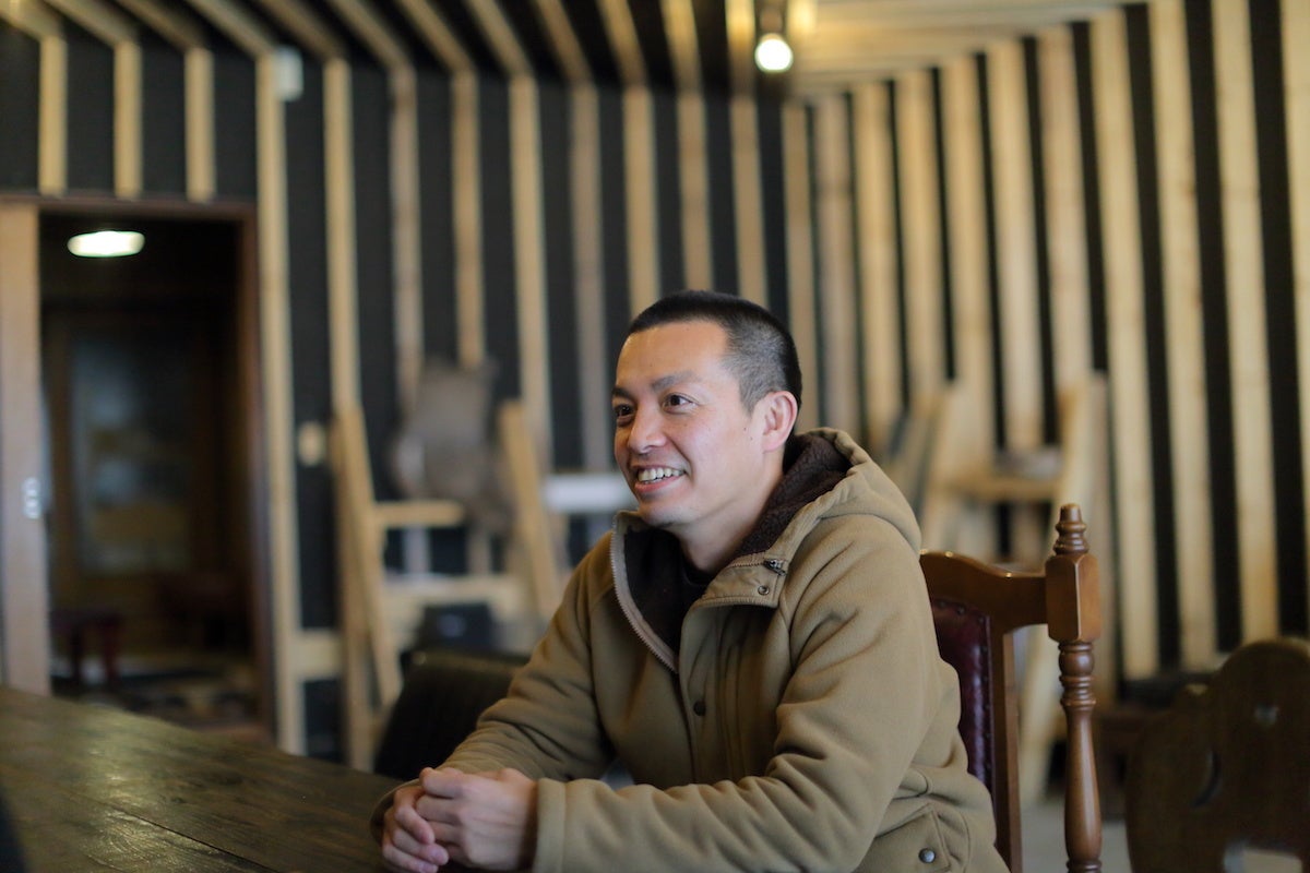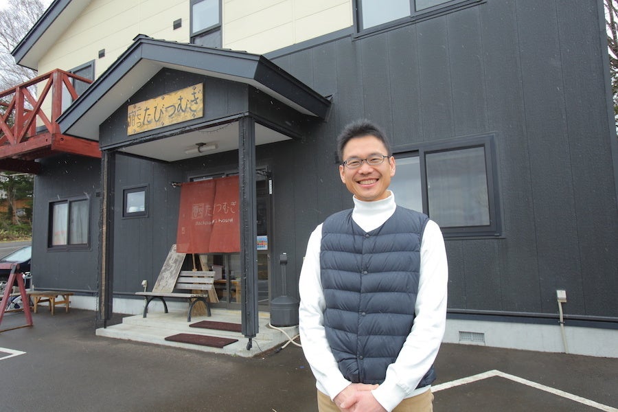 4月某日 倶知安町「ニセコ宿 たびつむぎ」にて。取材を快く受けていただいた山田さん。