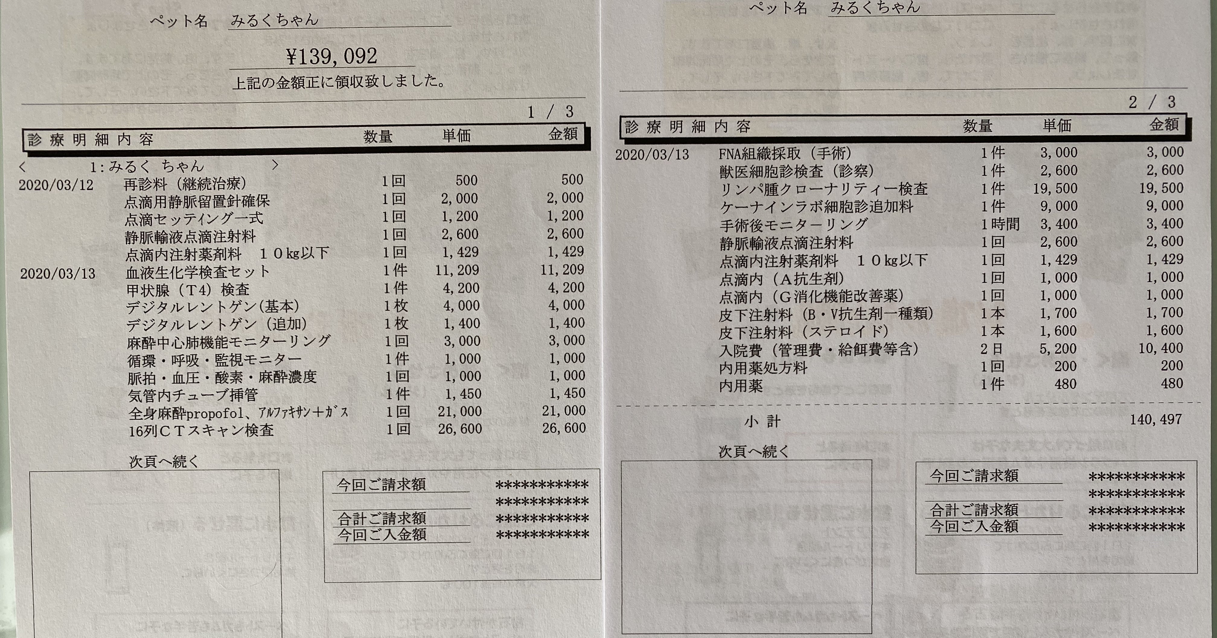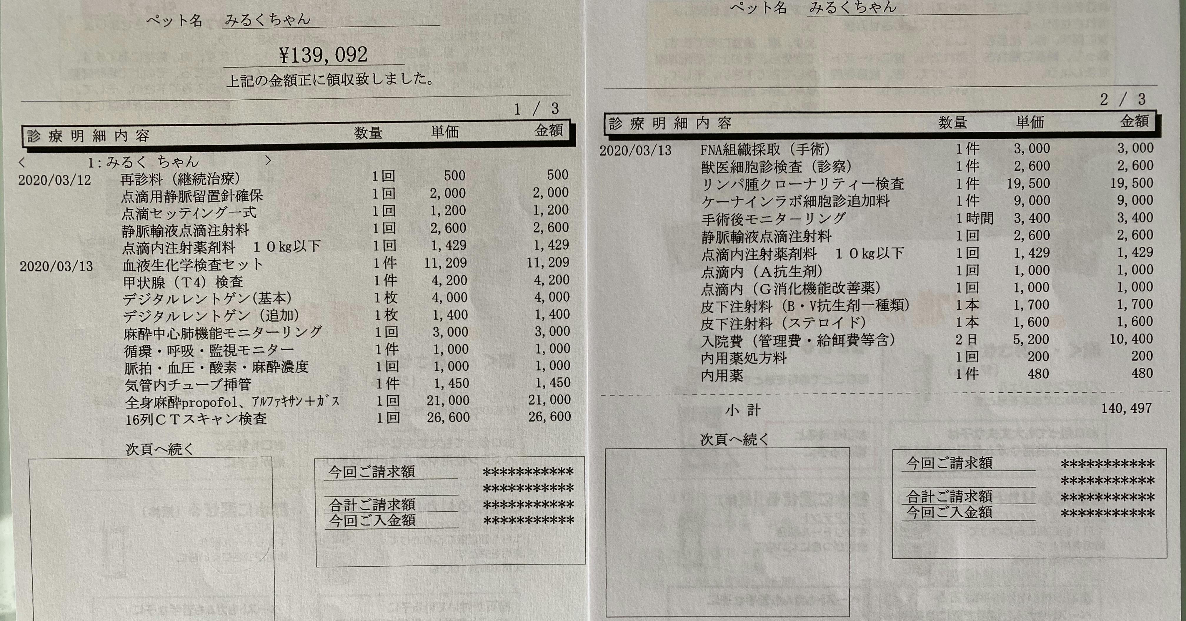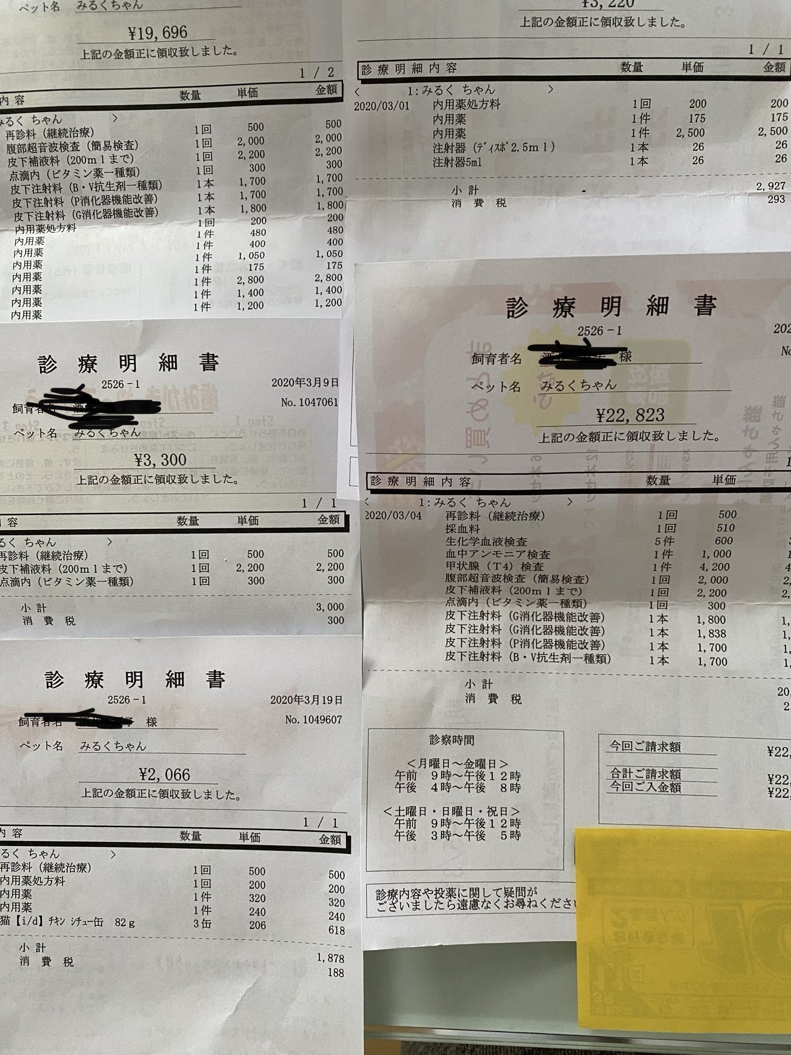 これまでの3つの病院を転々とし今に至るのですが、既に治療費は40万円を超えています。最近の一部の明細を添付いたします。