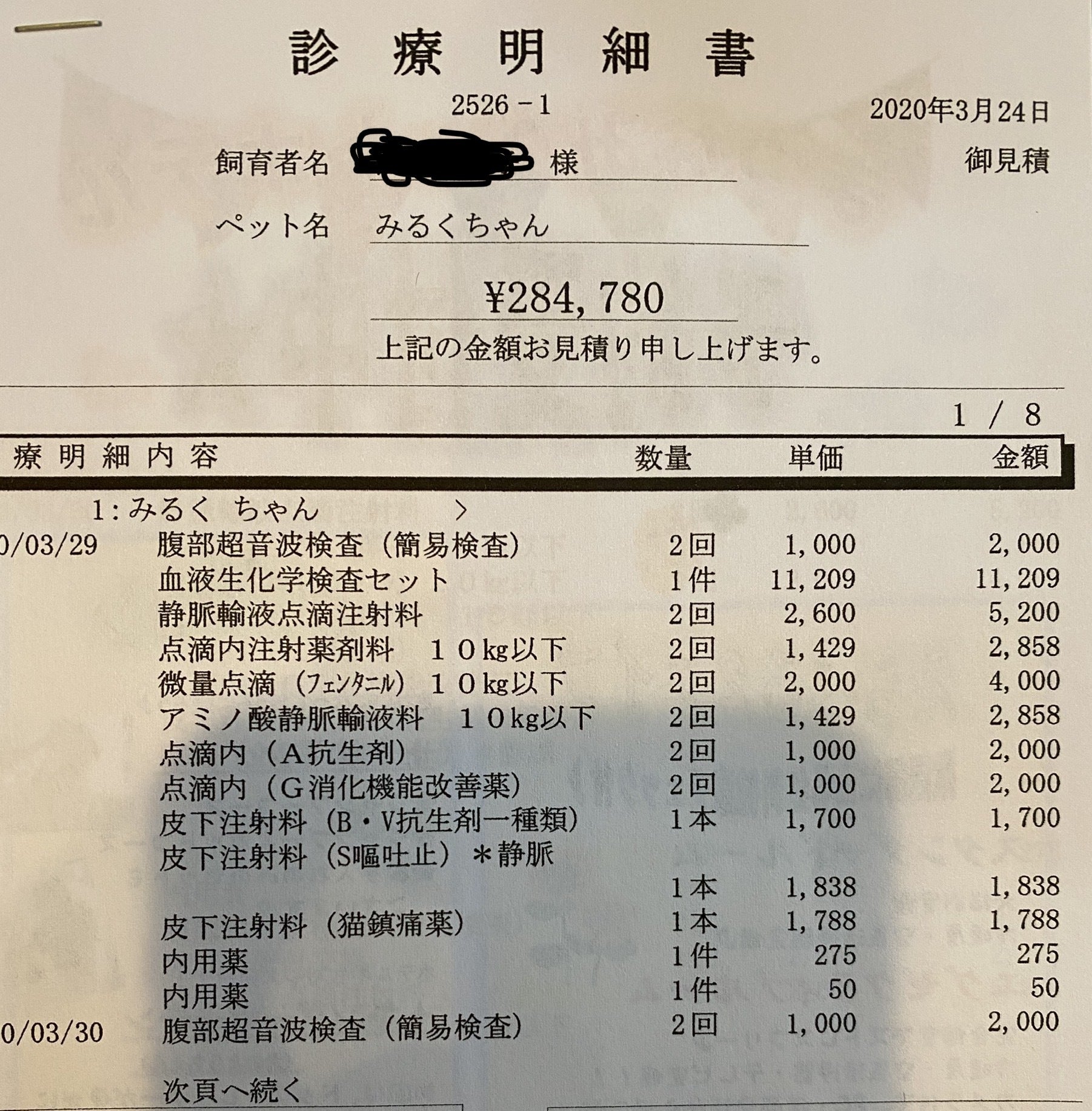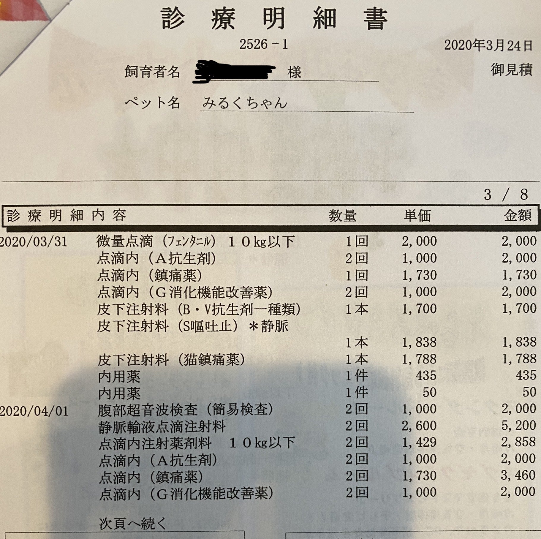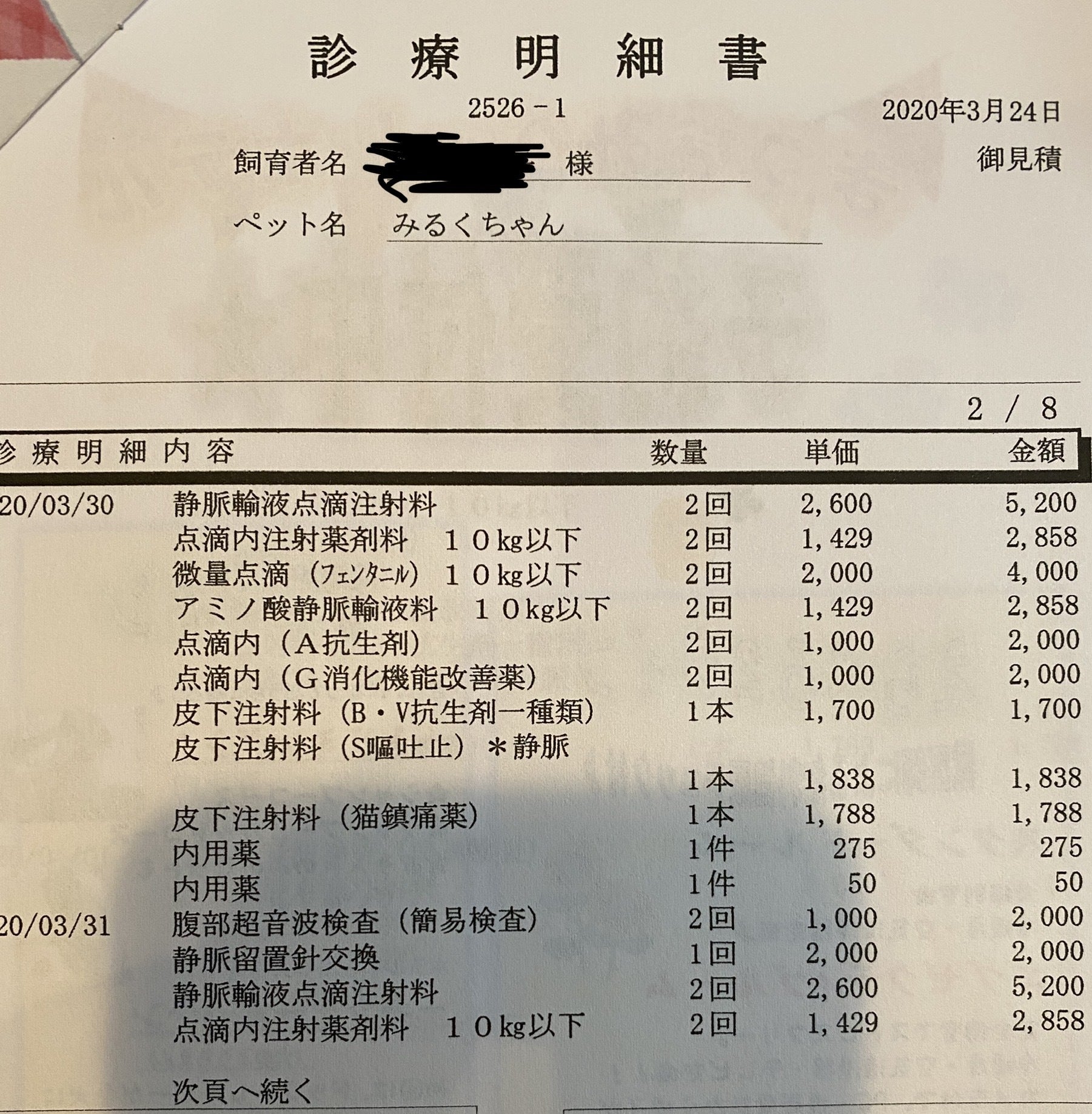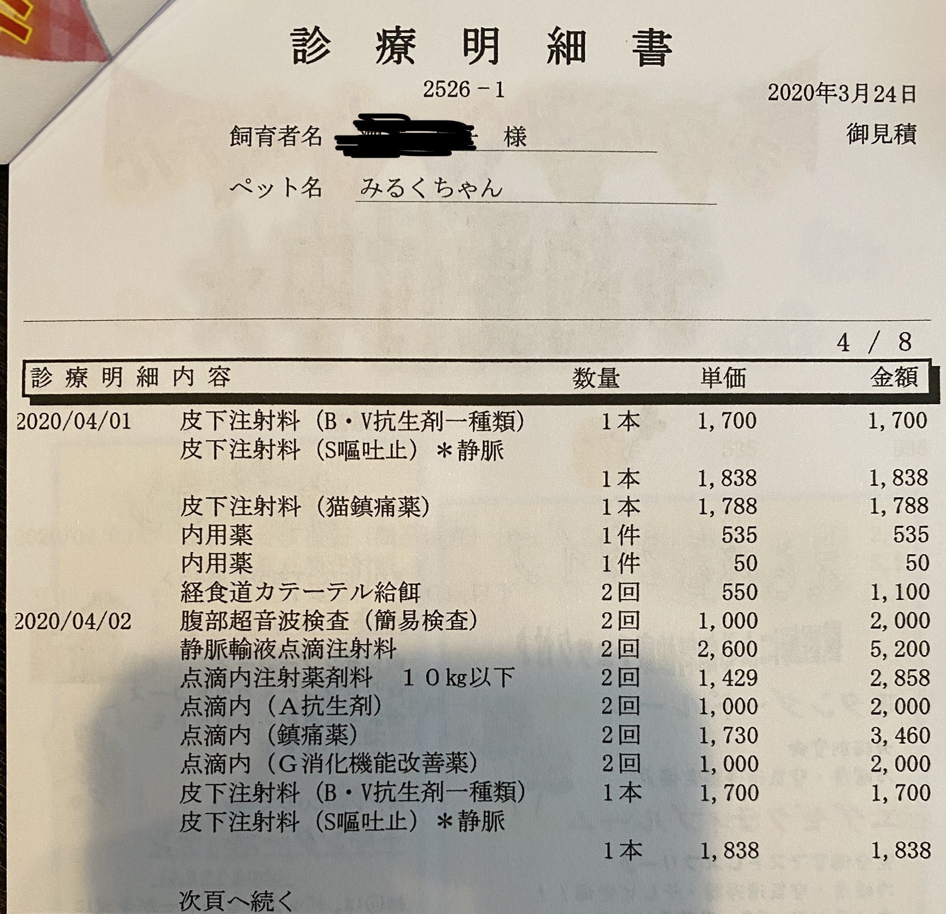 これまでの3つの病院を転々とし今に至るのですが、既に治療費は40万円を超えています。最近の一部の明細を添付いたします。