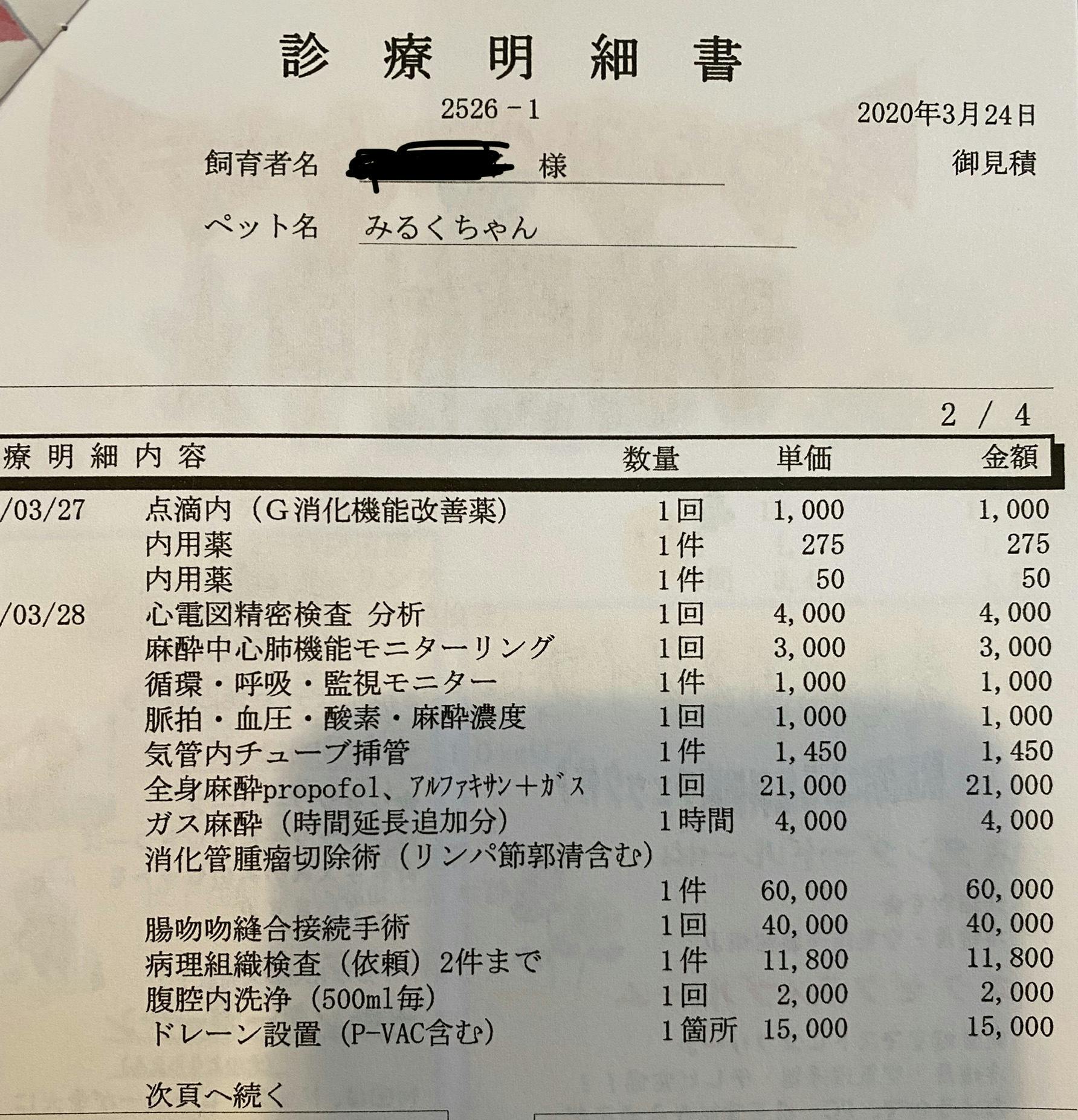 これから行う【手術、入院、治療費】の見積書を先生に作っていただきました。