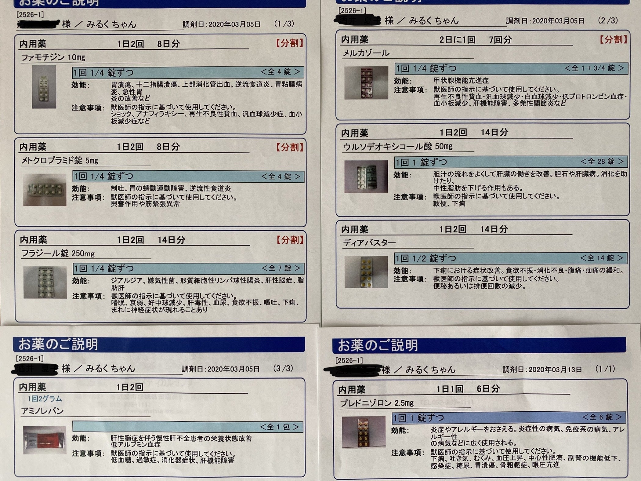 1日2回6種類の飲み薬を与え、痩せこけていた身体も少しふっくらし安心していたのですが、今年3月初旬また吐くようになり明らかに衰弱している彼女。