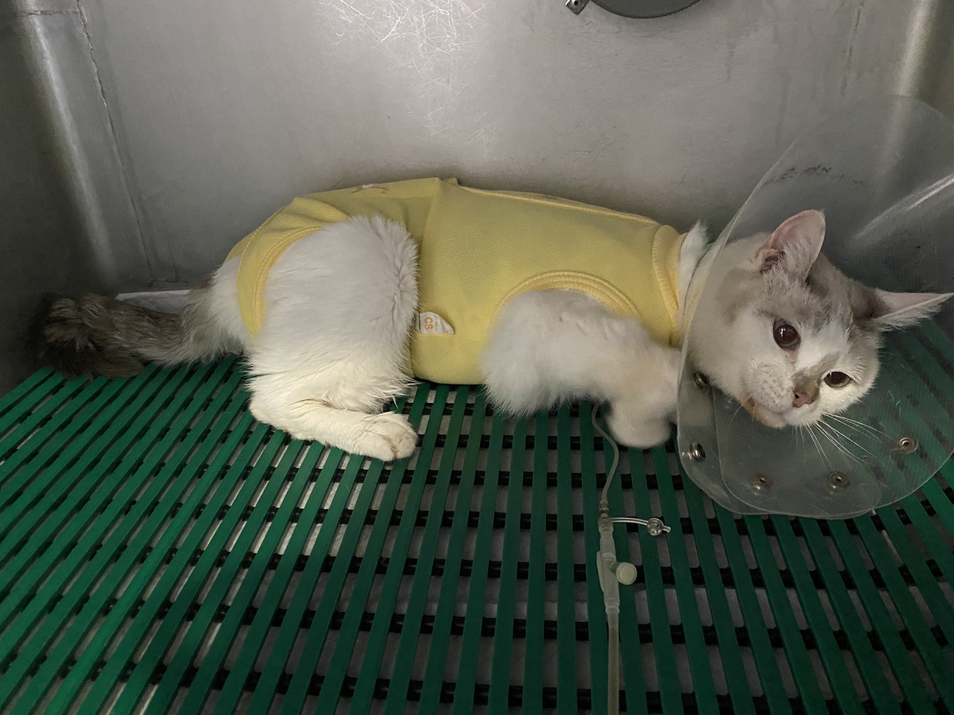 みるくが昨日退院致しました!12日間よく耐えてくれました。術後は順調に回復しいるとのことで安心していましたが、いざ帰ってきて初めて抱っこした時、痩せた体にショックを受けました。でも生きて帰ってきてくれただけで感謝です。腸の様子を見ながら餌を変えていくそうなので今はまだみるくのすきなご飯をあげることができない状態です。今週末の診察で採血の数値とエコーで異常がなければドライフードも食べていいそうです!ここで一気に体力をつけさせるつもりでおります!そして、今後の予定ですが、週末の結果が良好であればまたステロイドを始めます。※ステロイドは腸と腸の縫った箇所をくっつかなくする作用がある為手術前から辞めていました。そして、その1週間後から抗がん剤治療を始める予定です。また入院です。みるくはここからが本番です。正直とても怖いです。一先ず先生に、日程表と明細を作って頂いておりますので頂き次第アップ致します!それでは皆さま引き続きみるくの事、見守っていただけると嬉しいです!