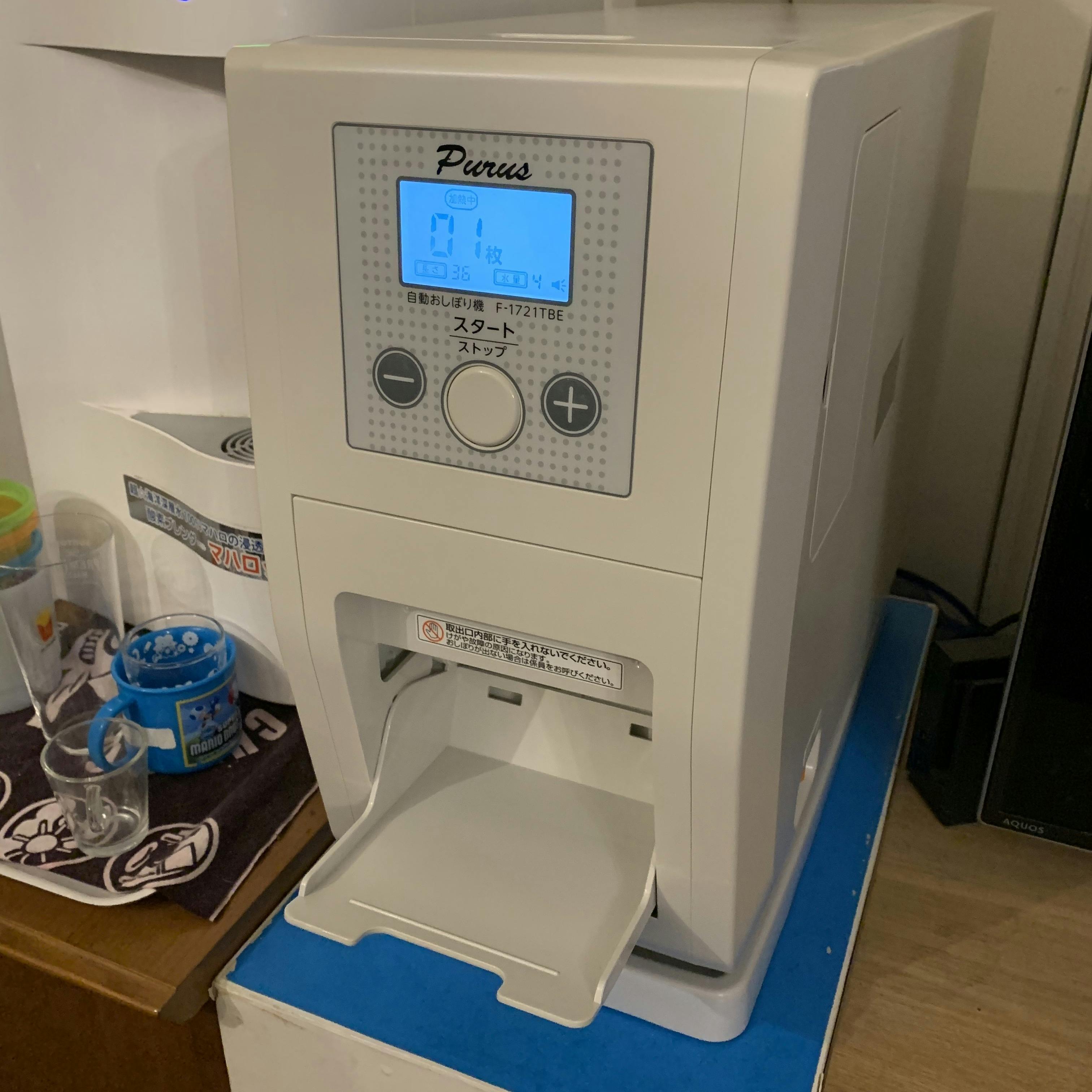 (介護施設)ボタンひとつで短時間に数多くのおしぼりが自動的に作れる。テーブルや人の手に触れずにおしぼりが作れるので衛生的。