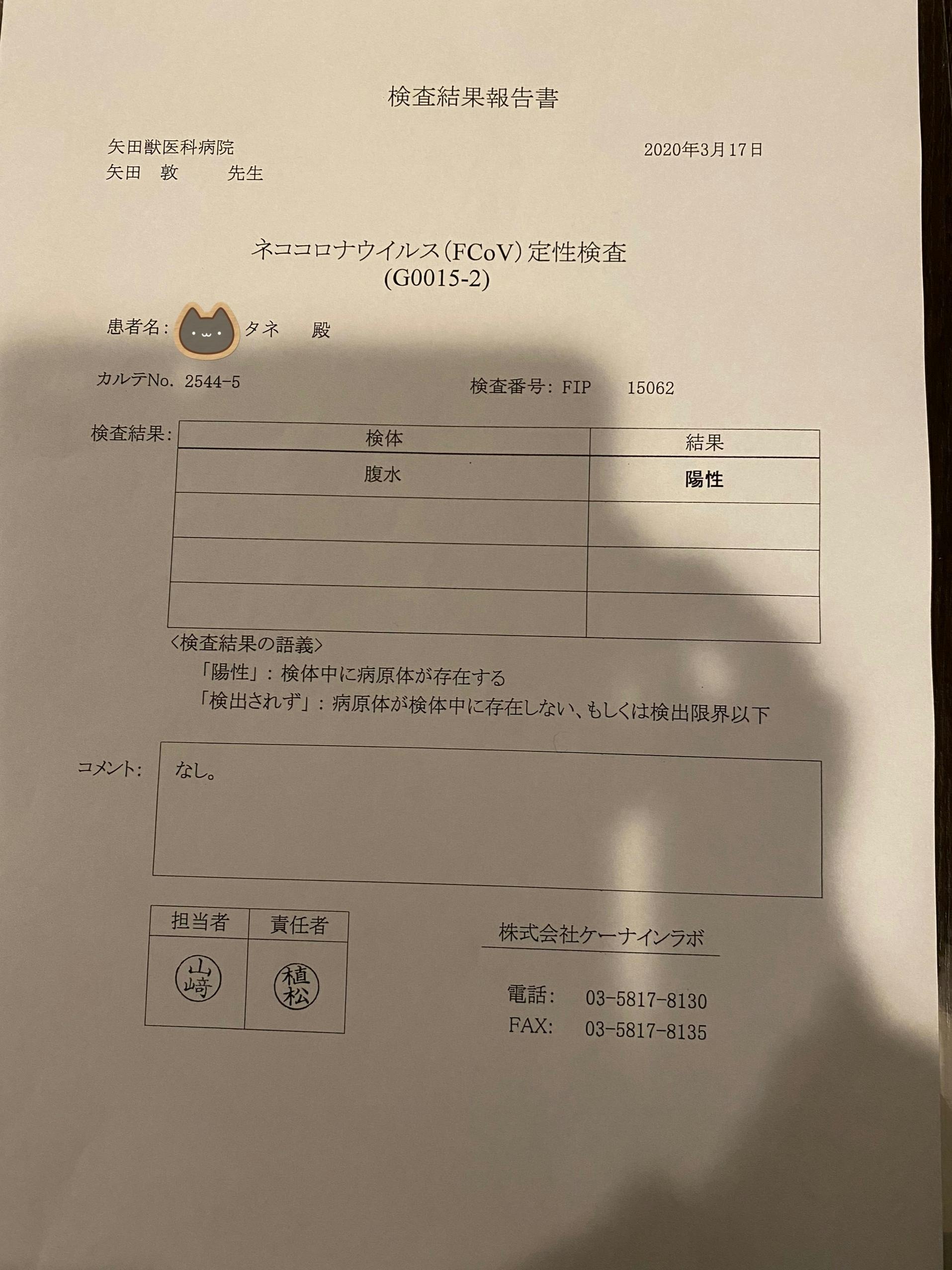 3月17日、愛猫のタネがFIPと診断されました。