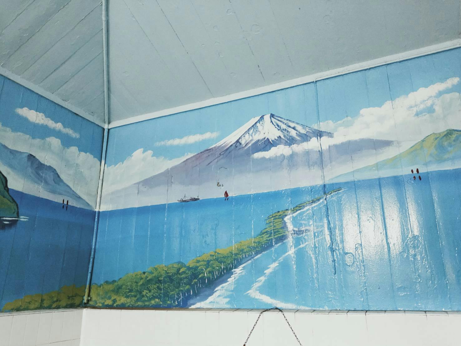 富士山と天橋立が描かれたペンキ絵は若の湯の自慢の一つです。