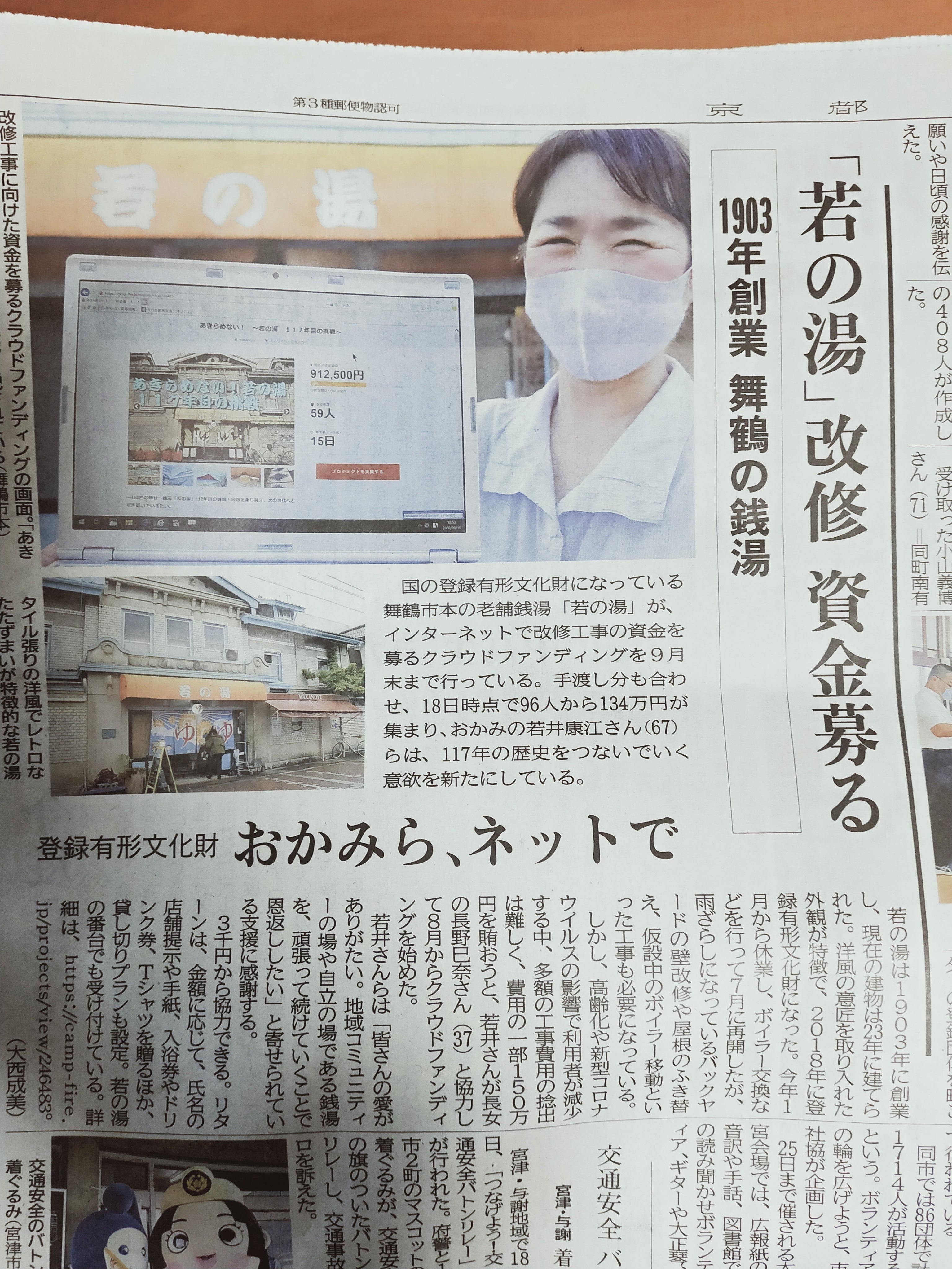 19日の京都新聞の丹後中丹版にて、若の湯のご紹介をして頂きましたm(_ _)m