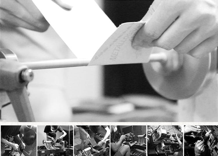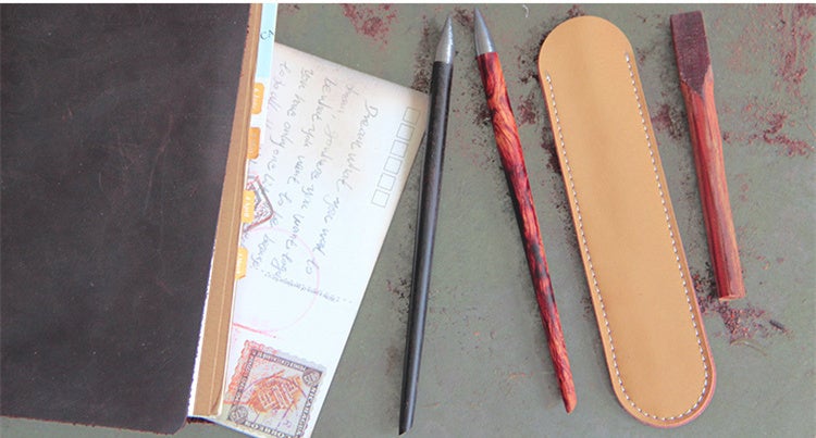 通常のペンとは異なり、ペン先には合金製のチップがはめ込んであります。この合金は摩擦で酸化した成分が紙に残るため、鉛筆の芯のような役割を果たします。