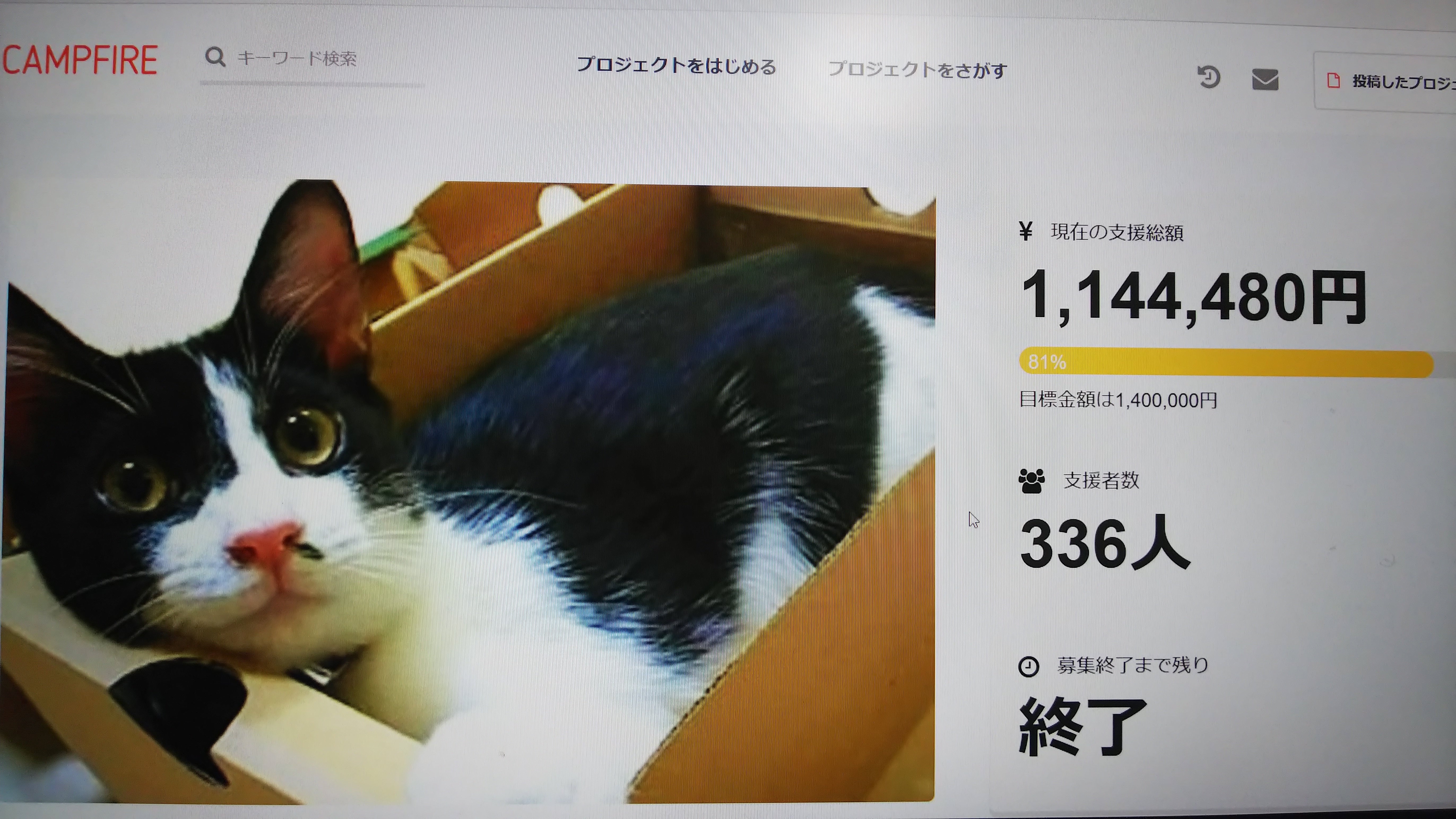 目標額には達していませんが、