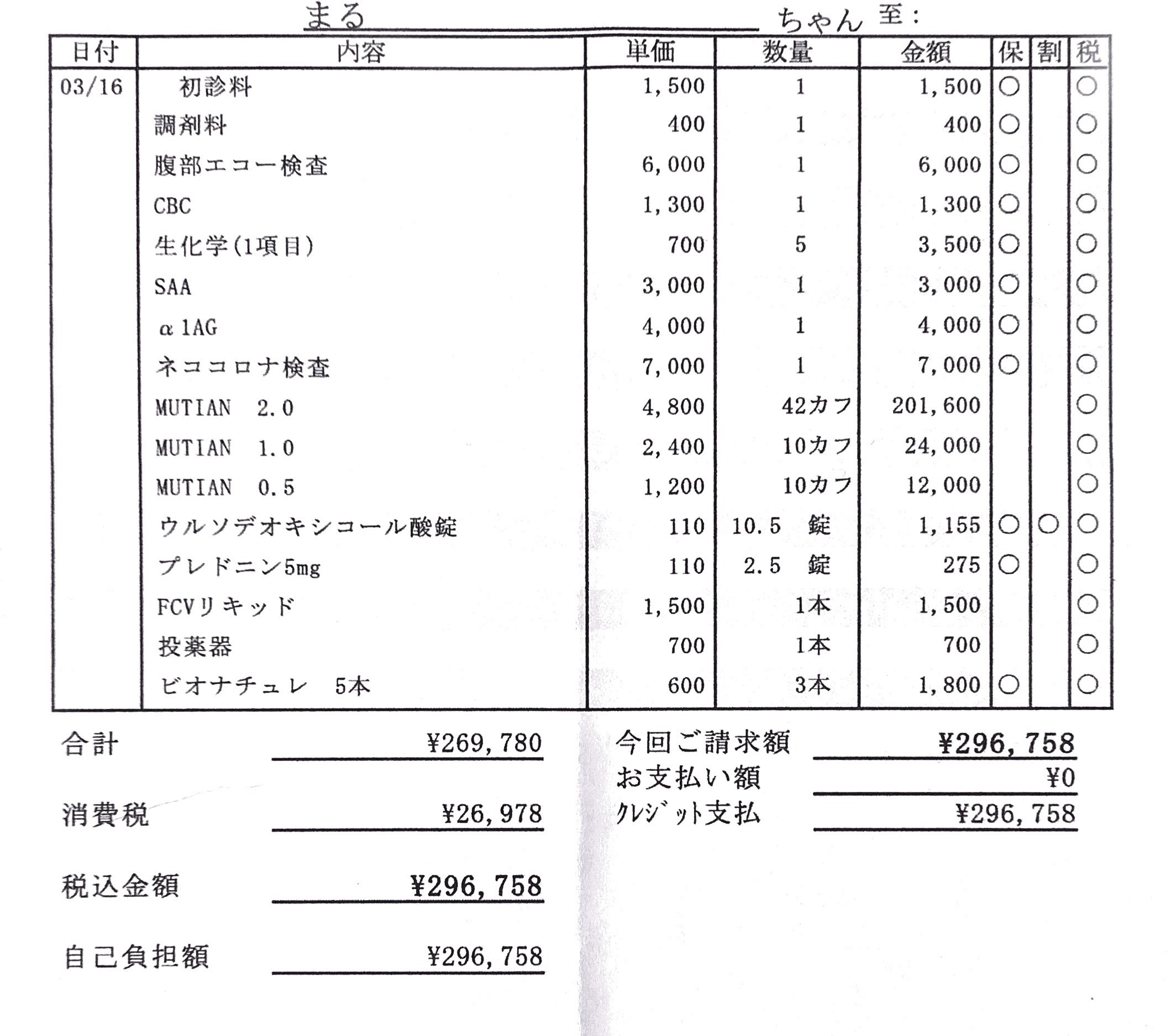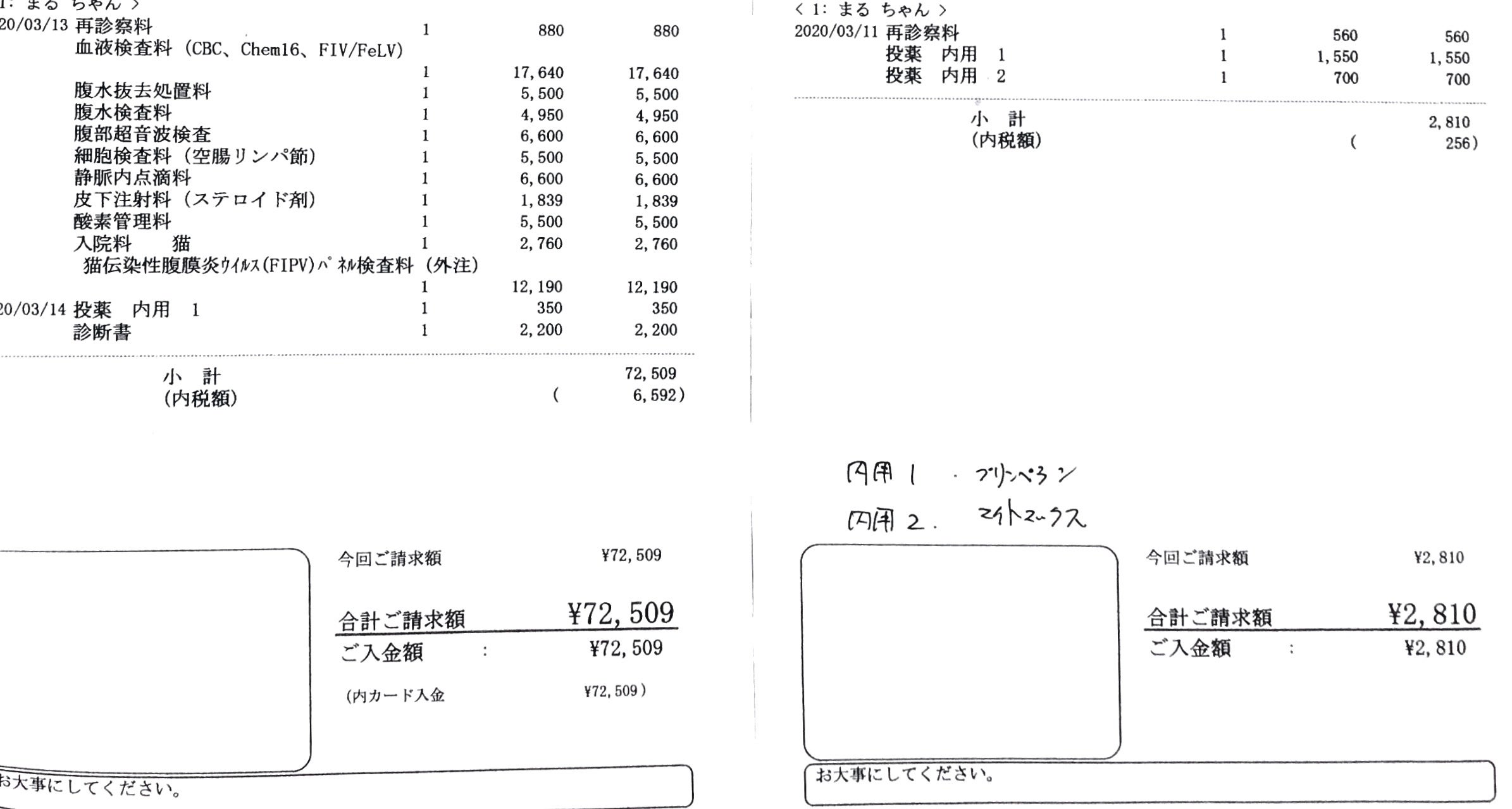 全て通院費用、お薬代に充当させて頂きます。