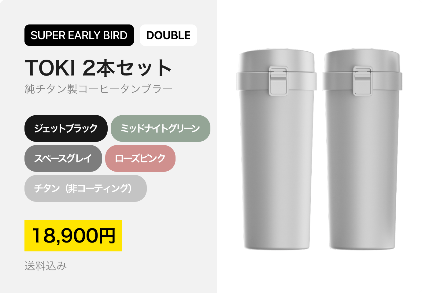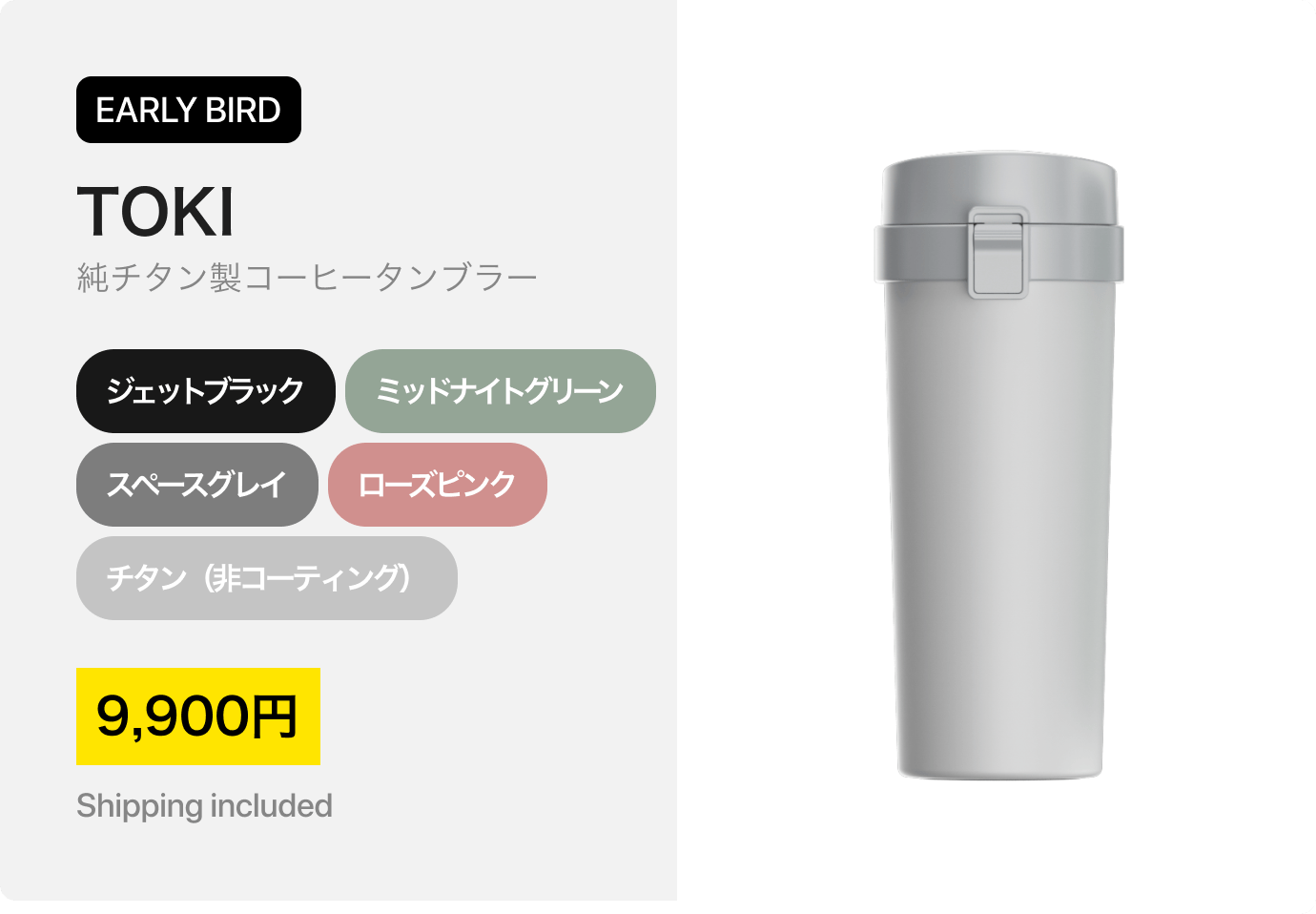 純チタン製真空タンブラー「TOKI」は、昨年のmachi-yaキャンペーンで絶大な人気を博したサーモボトル「Therma 3.0」と「Via 800」に続く、Thingyfyの新製品。一年以上に渡る広範囲なユーザーリサーチをもとに開発したプロダクトです。