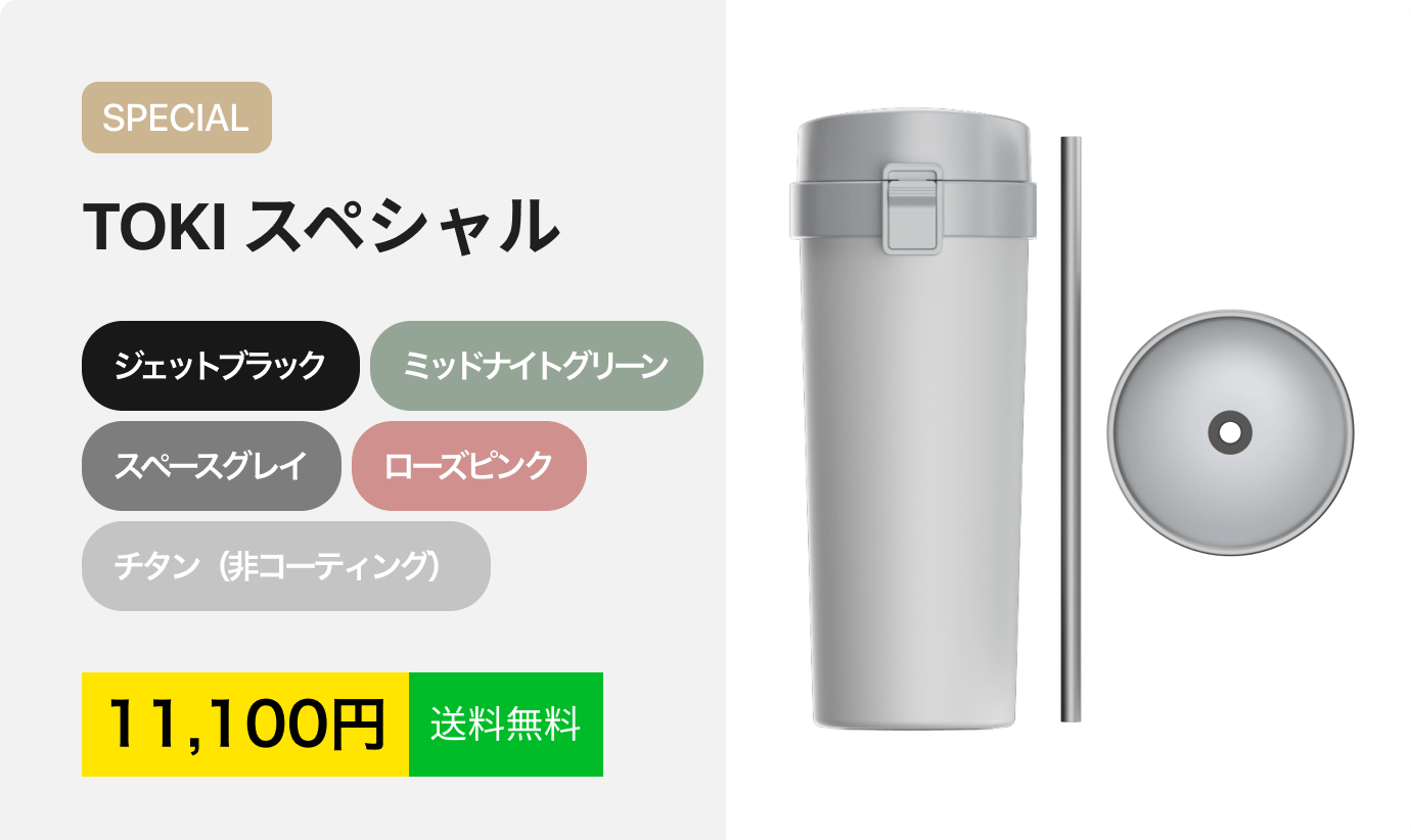 「TOKI」は、医療現場で使用されるグレードの高純度チタンを使った、防食、漏れ防止、抗菌性といった特徴をもつタンブラーです。