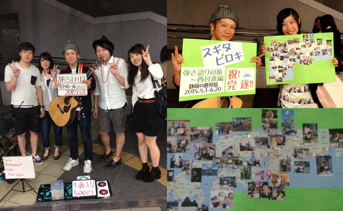 大学卒業後、音楽の道に進むことを決意。23歳の夏、所持金ゼロの路上弾き語り旅に出発。鳥の刺し身にあたって死にかけるなどの困難を乗り越え、路上弾き語りの投げ銭だけで西日本一周を完遂。