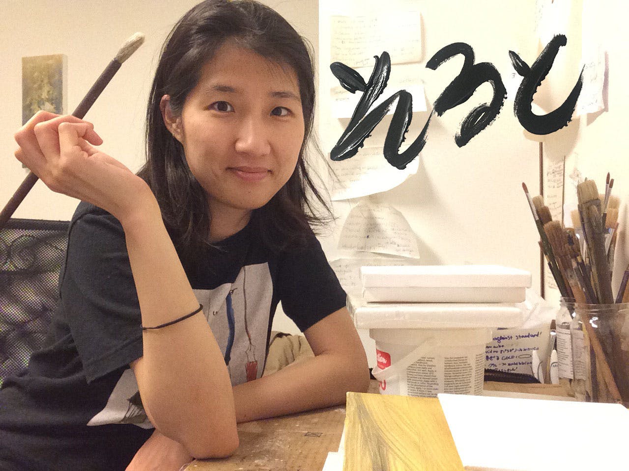 木は水分を吸いますので、キャンバス上でも画用紙のような表現ができます。