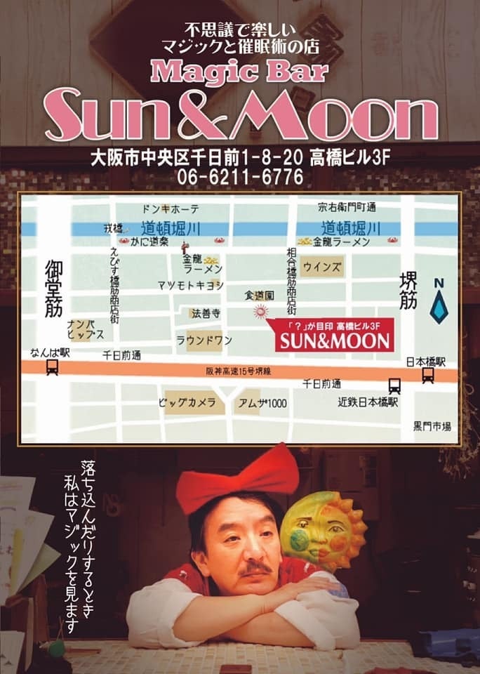 現在、大阪ミナミの千日前でマジックバー サン&ムーン を経営しております。